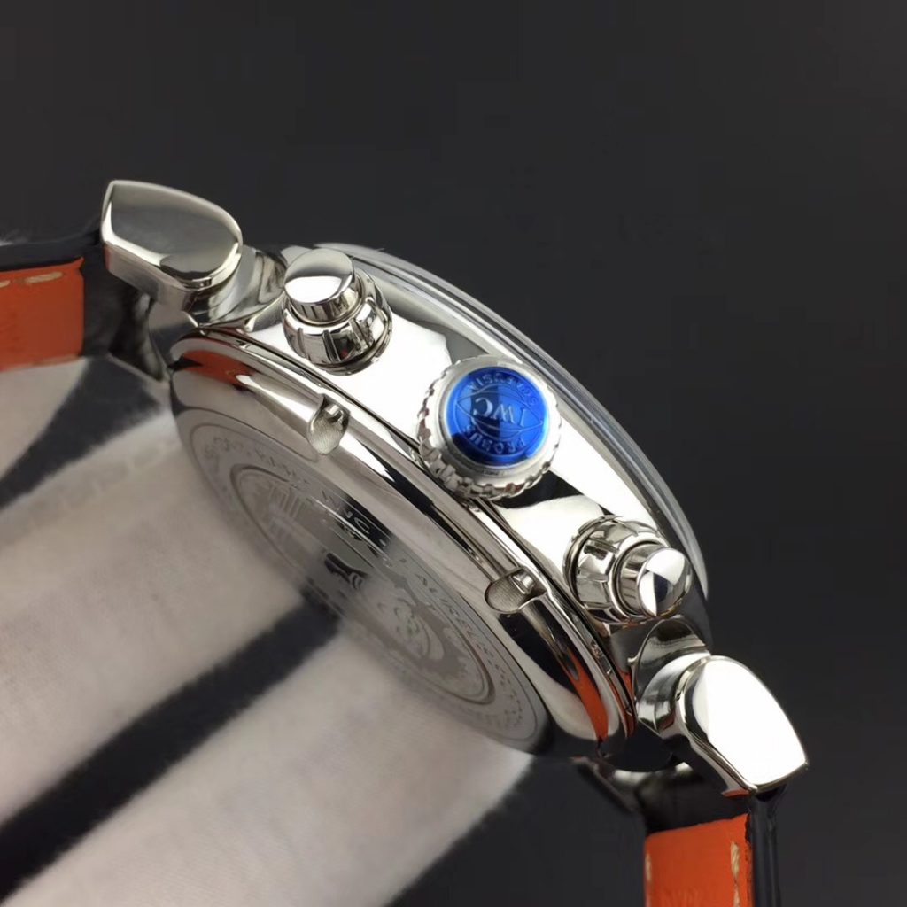 ZF factory IWC Da Vinci series IW393402 Laurance special version replica watches case adopt 316 precision steel forged and top numerical control technology once molding. The watch case style is mellow and full, and the lines are smooth and natural. The watch case surface adopt top high bright polishing technology, the side 2 o’clock position handle is timing start or suspend button, 3 o’clock position is time adjustable handle, 4 o’clock position is timing stop or reset button. The interface of case manufacture strictly and orderly, the details are polished in place.