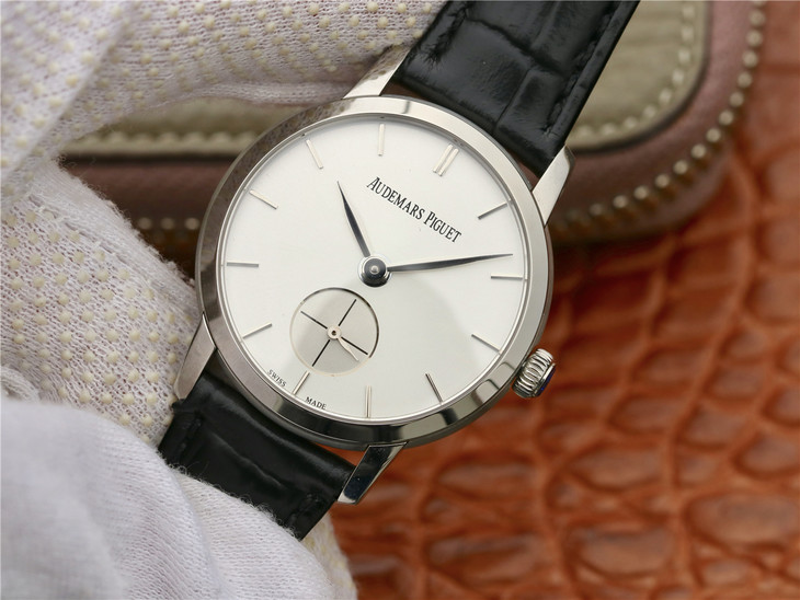 The appearance of OS factory Audemars Piguet Jules Audemars replica women watches version is concise and generous on the whole, it’s the style that men and women will like to wear. This type Audemars Piguet neutral style watch has 33 mm diameter watch case, it is slim and thin and has extremely Linear Aesthetics. Silver color watch dial collocate stereoscopic time mark and pointer, prominence the novel design of this legendary watch type. And anti-glare treatment Sapphire crystal glass watch mirror looks dazzling and outstanding. 6 o’clock position equipped with small second hand and collocation true leather watch strap, simple pin buckle which is elegant and fashion. It also explains the unique feminine charm and smart foil irresistible elegant demeanor.