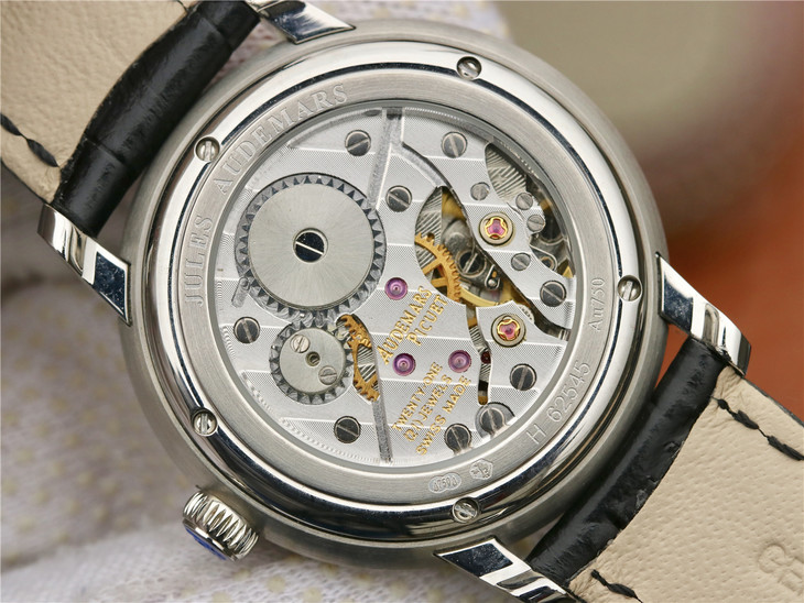 The replica Audemars Piguet Jules Audemars series 77238 women watch version adopt Seagull replica Calibre 3090 hand wind self-produced movement, and its all components are replicated 1:1 according to the original factory. The chamfer polished treatment bridge splint outline a beautiful arc.