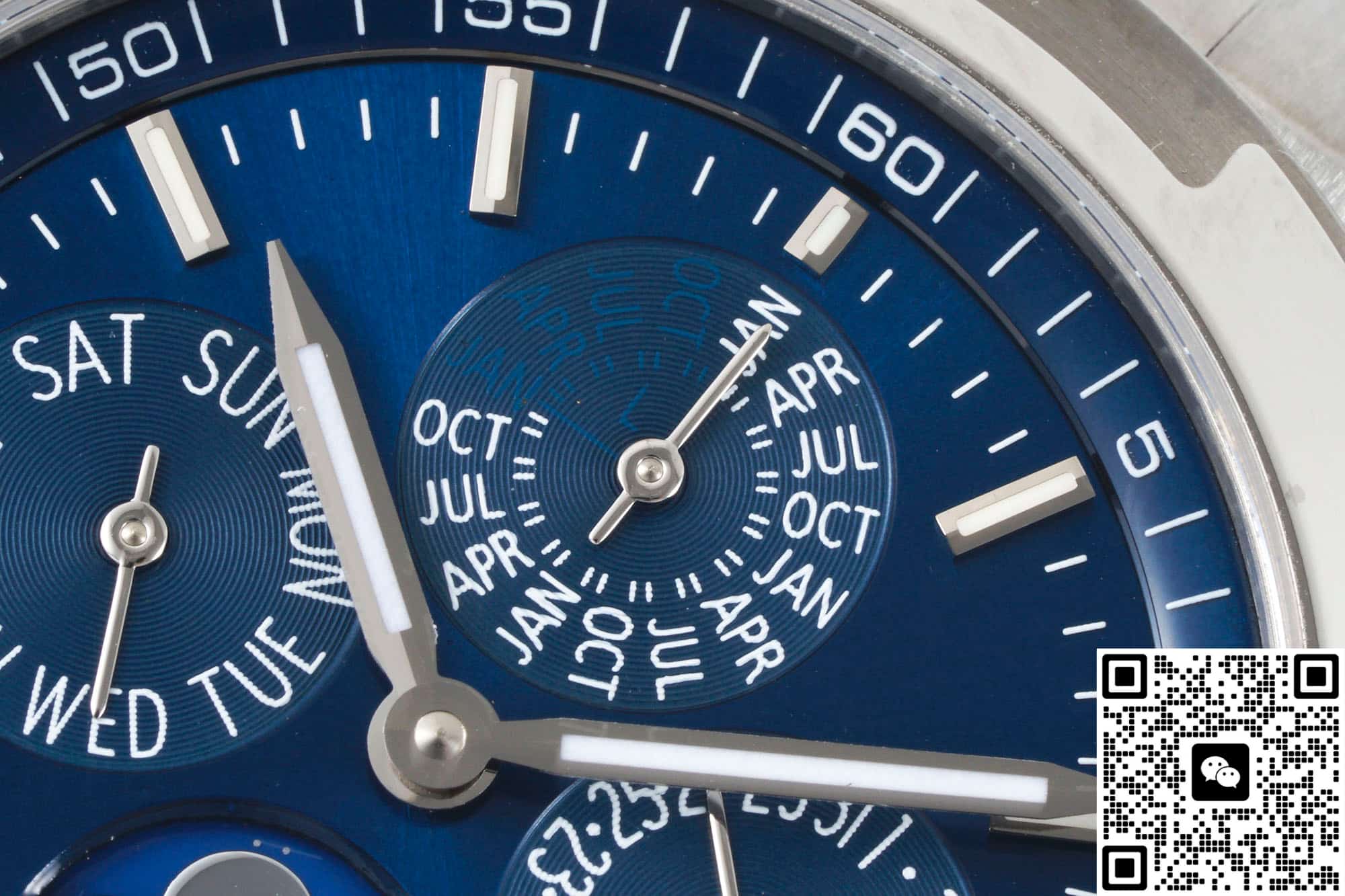 Movement:Cloned 1120QP/1 Automatic machinery Case:Stainless steel Crystal:Sapphire Dial:blue |