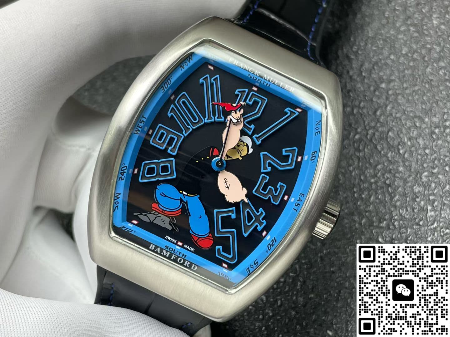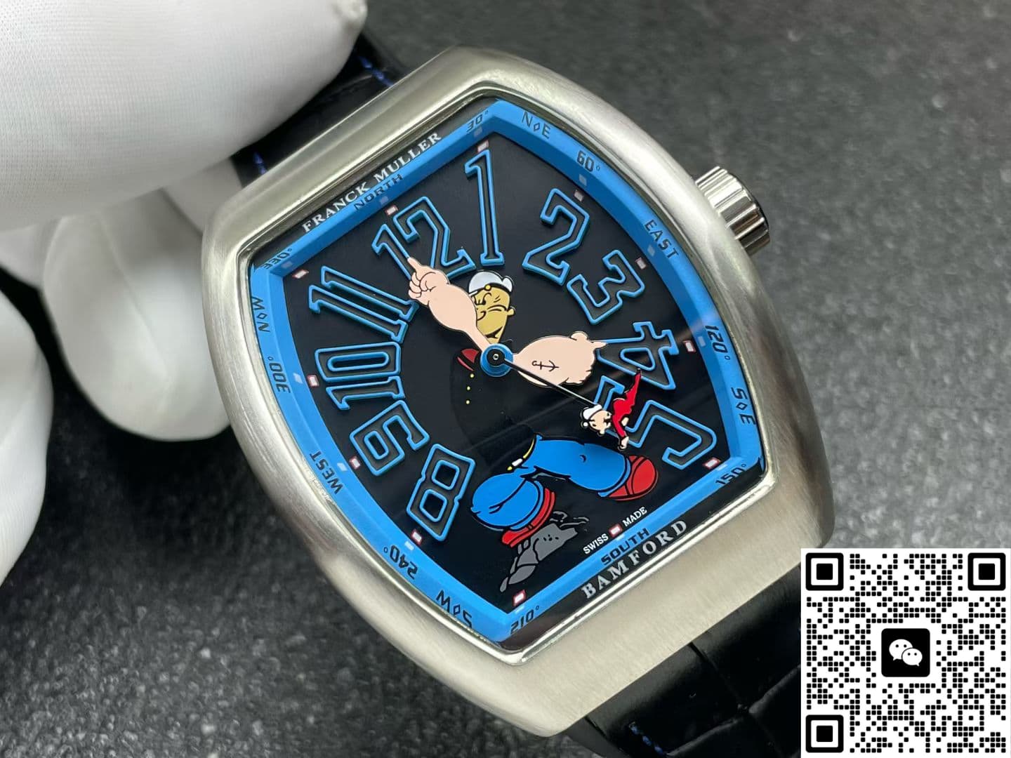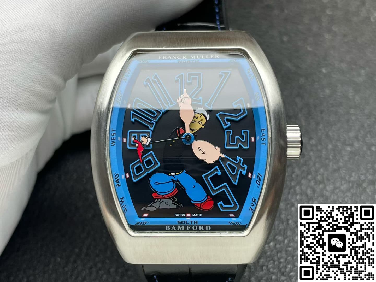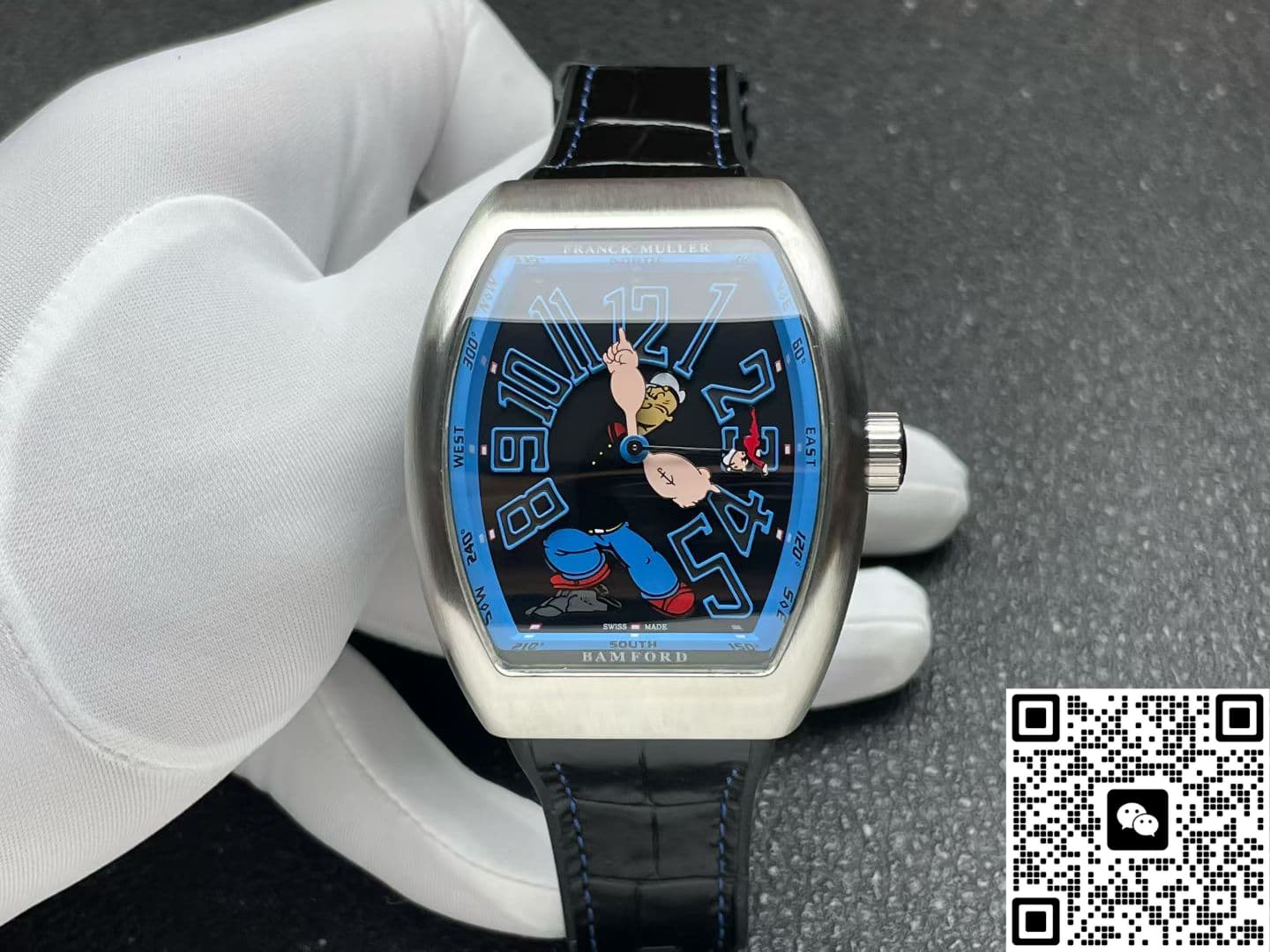 1、This ABF Factory Franck Muller Vanguard x Popeye V45 SC DT black 1:1 Best Edition Replica Watch is very close to the original in terms of craftsmanship details and overall polishing. However, the low-quality versions differ greatly from the originals in many details. When purchasing, pay close attention to the polishing process of the case, the printing quality of the dial, the hands and other details.