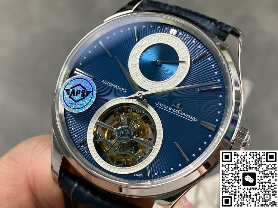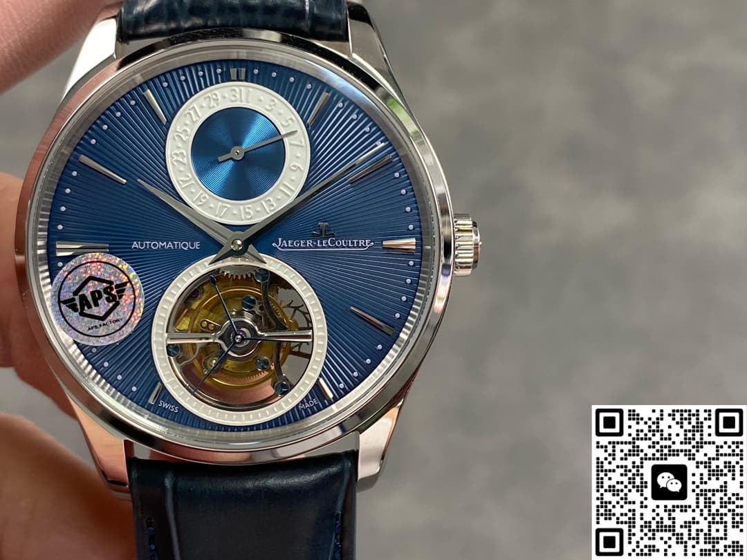 Today, let’s chat about a top-tier replica watch from the Master series. This Jaeger-LeCoultre Master Q13234E1 was launched by APS Factory in early 2026 and has been really popular. The 40mm round case has a classic look. It’s made of stainless steel, paired with a black leather strap. The deep blue dial features a tourbillon device and a date display, showing off its complicated craftsmanship. The overall design is simple yet high-end. It goes well with both formal wear and casual outfits. In this article, I’ll review it from different aspects to help you understand it better.