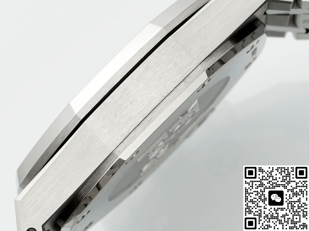 The APW factory Audemars Piguet Royal Oak 26331ST.oo.1220ST.01 replica watch features a three-layer structure consisting of a bezel, case, and back cover. It is designed with a waterproof gasket in between, and its water resistance performance is also very good. The mirror surface is a highly transparent sapphire crystal glass watch crystal. The Angle of the mirror surface is basically flush with the bezel. This craftsmanship is also consistent with the genuine product. The head grain on the strap can also be moved. The advantage of this movable head grain is that it can fit the wrist perfectly when worn, making it more comfortable. If this part cannot be moved, for people with thinner wrists, It will float up and not fit the wrist. The back cover is a tight one, which not only protects the movement well but also enhances the water resistance.