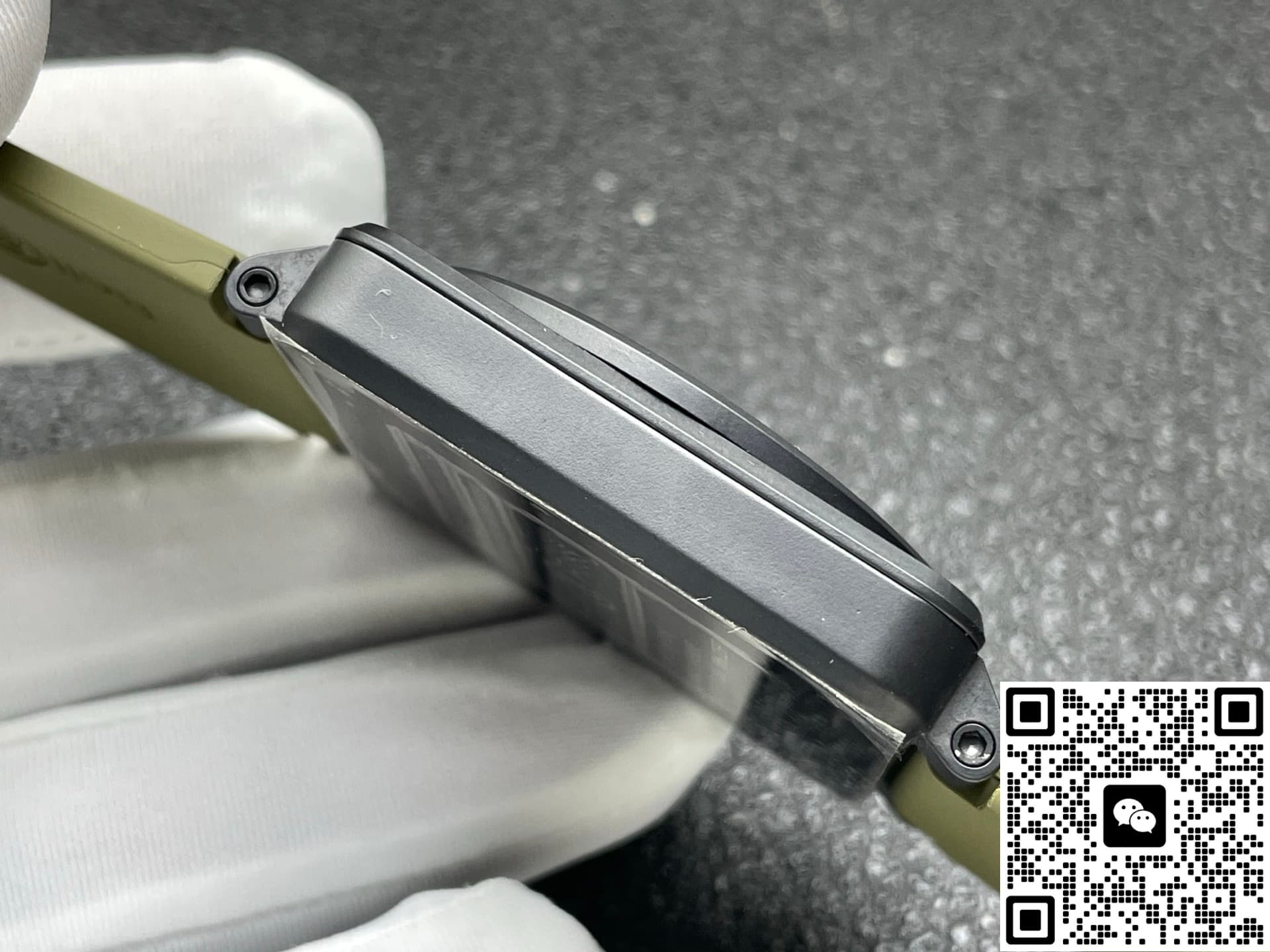 The color of the appearance also largely determines whether this watch is a one-to-one reproduction. This replica is made through an anodized metal dial and multiple layers of bulletproof paint spraying. The color matching achieves a matching degree of over 95%, and the color control is very good. It is neither too yellow nor too green. This color is in between the two, with low color saturation and purity. It’s very pleasing to the eye. The 41MM square dial features a highly recognizable design of a square within a circle, which remains unchanged. The lug spacing is 45MM, making it suitable for wrist measurements of 16-20cm. The four corners are all quite rounded and rectangular, making it very comfortable to wear. At the same time, it retains the tough case of a military watch and is paired with a military green rubber strap, which also has an excellent anti-slip effect. Wearing it on the street attracts a lot of attention.