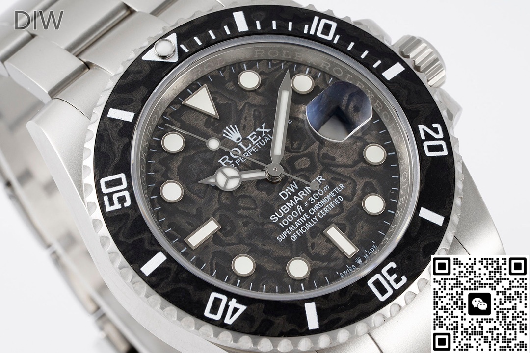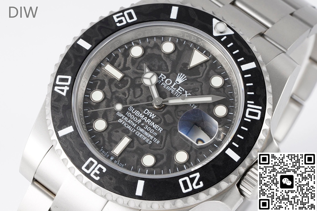 1、This DIW Factory Rolex Submariner 116610 carbon fiber 1:1 Best Edition Replica Watch is very close to the original in terms of craftsmanship details and overall polishing. However, the low-quality versions differ greatly from the originals in many details. When purchasing, pay close attention to the polishing process of the case, the printing quality of the dial, the hands and other details.