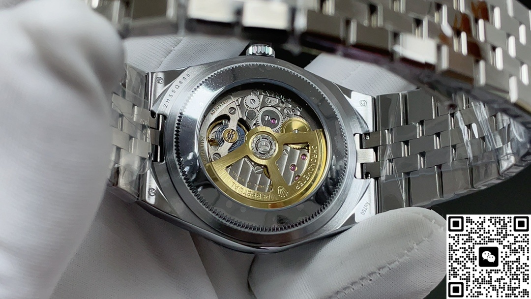 This replica watch is comfortable to wear. The movable part of the watch bracelet starts directly from the base of the case. It adopts a five-section flat link. The middle three links are narrowed to fit the wrist bone, and the wide links on both sides enhance support, increasing the wearing comfort by 40%. Actual test feedback: Many watch enthusiasts have revealed that the integrated strap performs more stably in swimming and fitness scenarios, and there is no problem of traditional link jamming when worn for a long time. This forms a sharp contrast with the handling methods of other competing products on the market. For an integrated luxury sports watch, this design enables the bracelet to start bending earlier, thus better fitting the wrist curve. In the actual wearing experience, the advantages of this design are obvious, indeed creating the most comfortable integrated bracelet experience at present. The bracelet is a slim commemorative model with five links. When touched, you can clearly feel that the polishing process of the bracelet is very fine. This good feel can’t just be described; you have to wear it on your hand to know – it’s not a single shiny surface but alternately polished, giving it a layered look and not causing any discomfort when stuck on your wrist. The dust-proof aspect is also well done. A double-layer rubber ring is added to the joint between the crown and the case, which can basically block the sand and mud encountered in daily life, so there is no need to worry about it seeping in.
