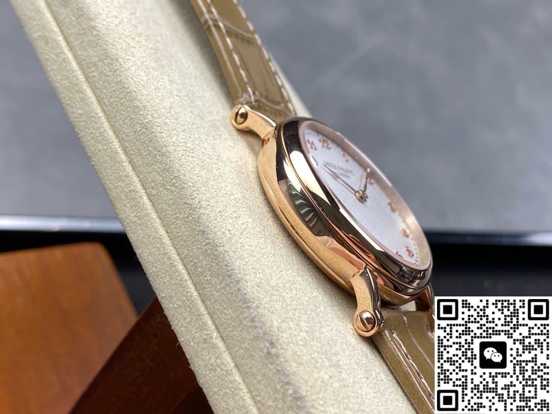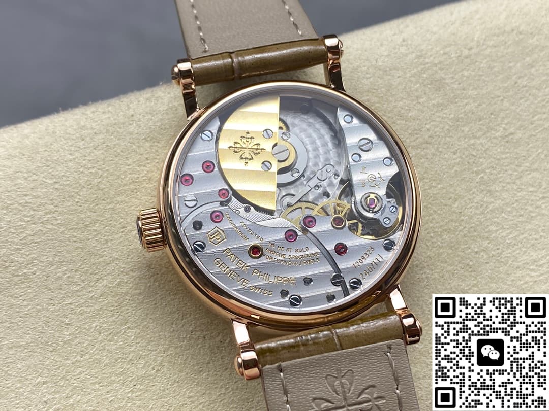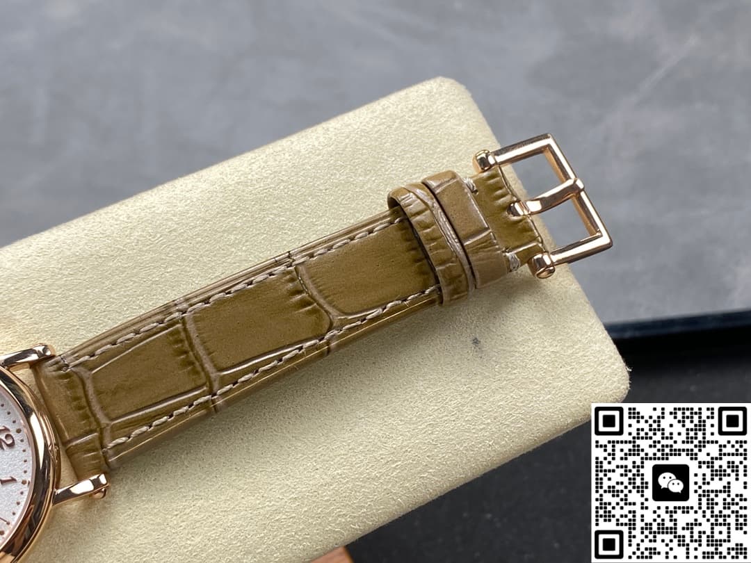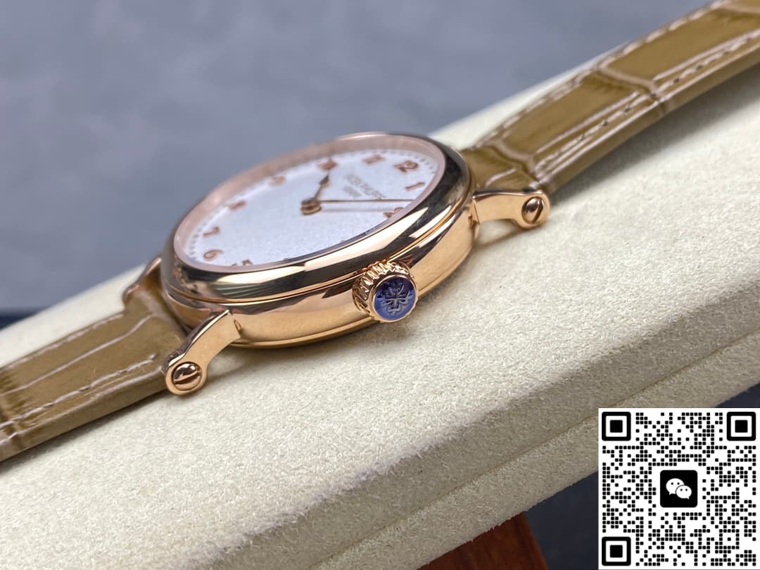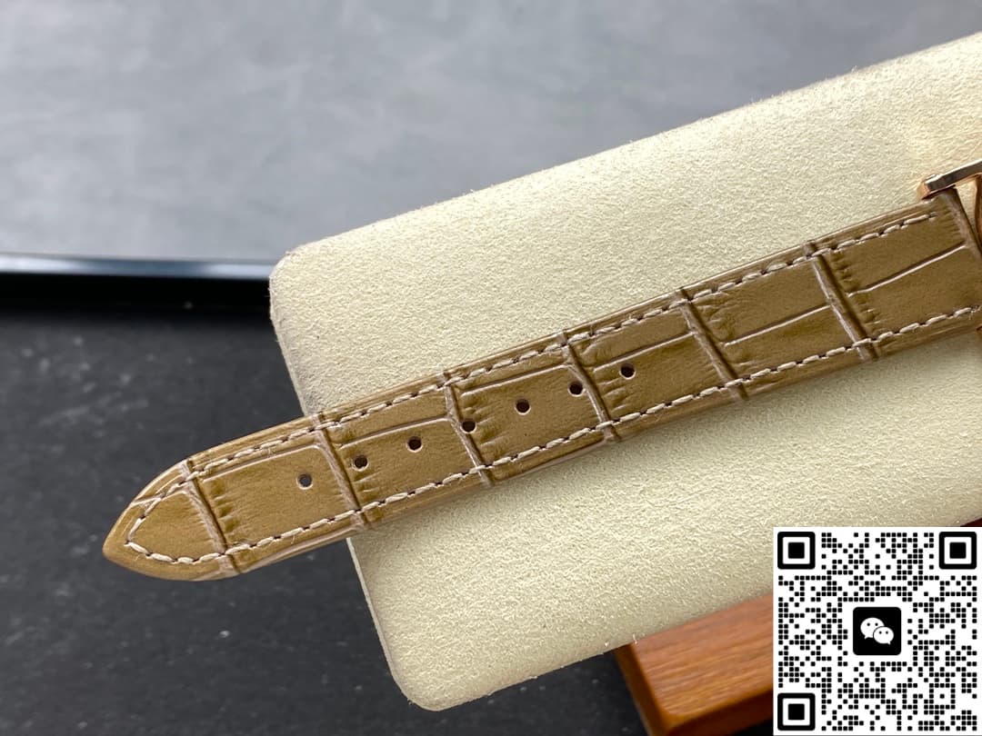 The Calatrava charm of this wristwatch is mainly reflected in the dial, rose gold case and strap, giving an overall retro feel that will never go out of style no matter how long it is. The most proud aspect of GS Factory lies in the degree of restoration of the dial. The genuine off-white grainy dial is hand-engraved. Under a magnifying glass, rich irregular textures can be seen, which are very layered. GS Factory simulates this effect through stamping technology. When viewed from a social distance of 30CM, the similarity can reach over 90%. However, when observed under an 8x magnifying glass, these textures appear slightly mechanical and lack the artistic appeal of artificial ones. The gold three-dimensional digital hour markers are electroplated, but their luster is still a bit lacking. The edge polishing is acceptable. The outline of the hands is consistent with the genuine product. Upon closer inspection, it can be seen that the chamfer at the fixed shaft center is slightly stiff and lacks the roundness of the genuine product. For players who pay attention to details, it is recommended to choose a soft light environment and an indoor setting for appreciation.