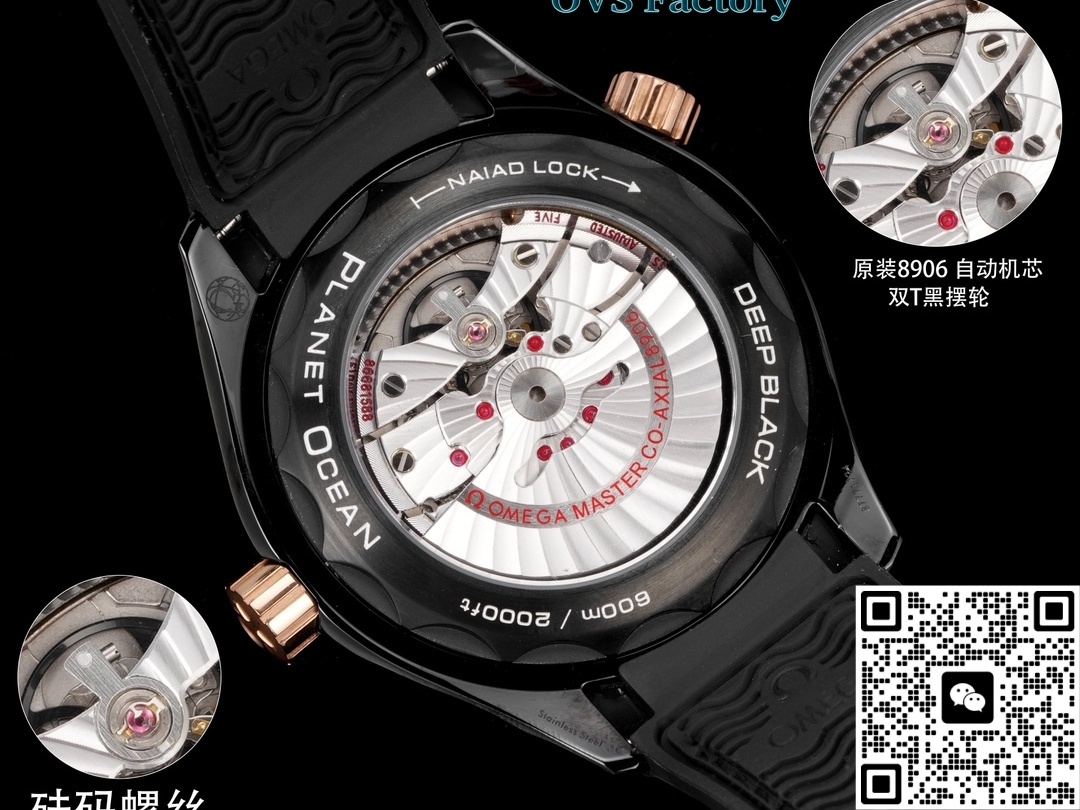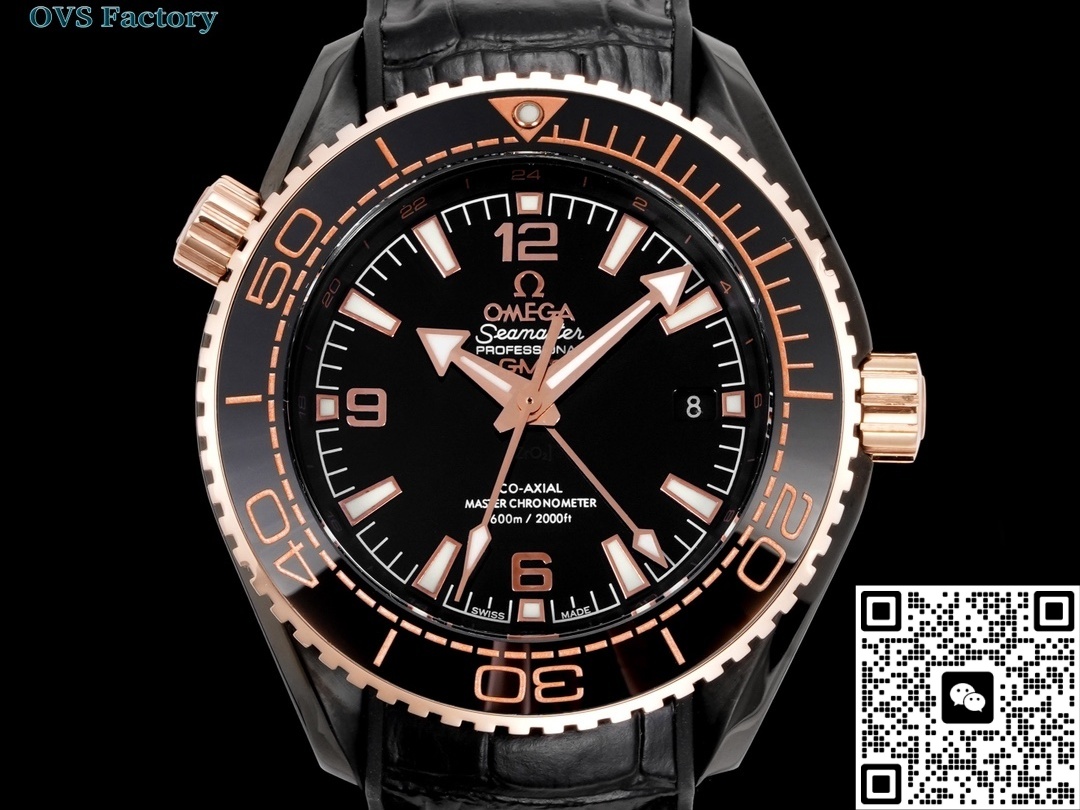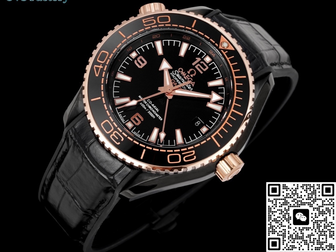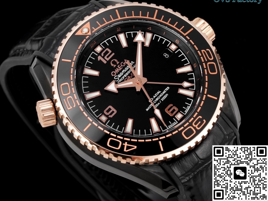 The entire watch is made of ceramic, which is lighter than watches made of stainless steel. The strap is leather. Therefore, this replica watch will be lighter in weight, will not weigh on the hand when worn, and can be worn for a long time. The black leather strap is soft against the skin and has good breathability, making it perfect for summer. The color of this Omega watch is basically black, with only a small amount of gold for embellishment, so it is also nicknamed “Deep Sea Black”. The whole watch feels luxurious and powerful. It looks very handsome when worn in daily life and has a very high rate of turning heads. This is also one of the best watches made by the OVS factory and is highly recommended.