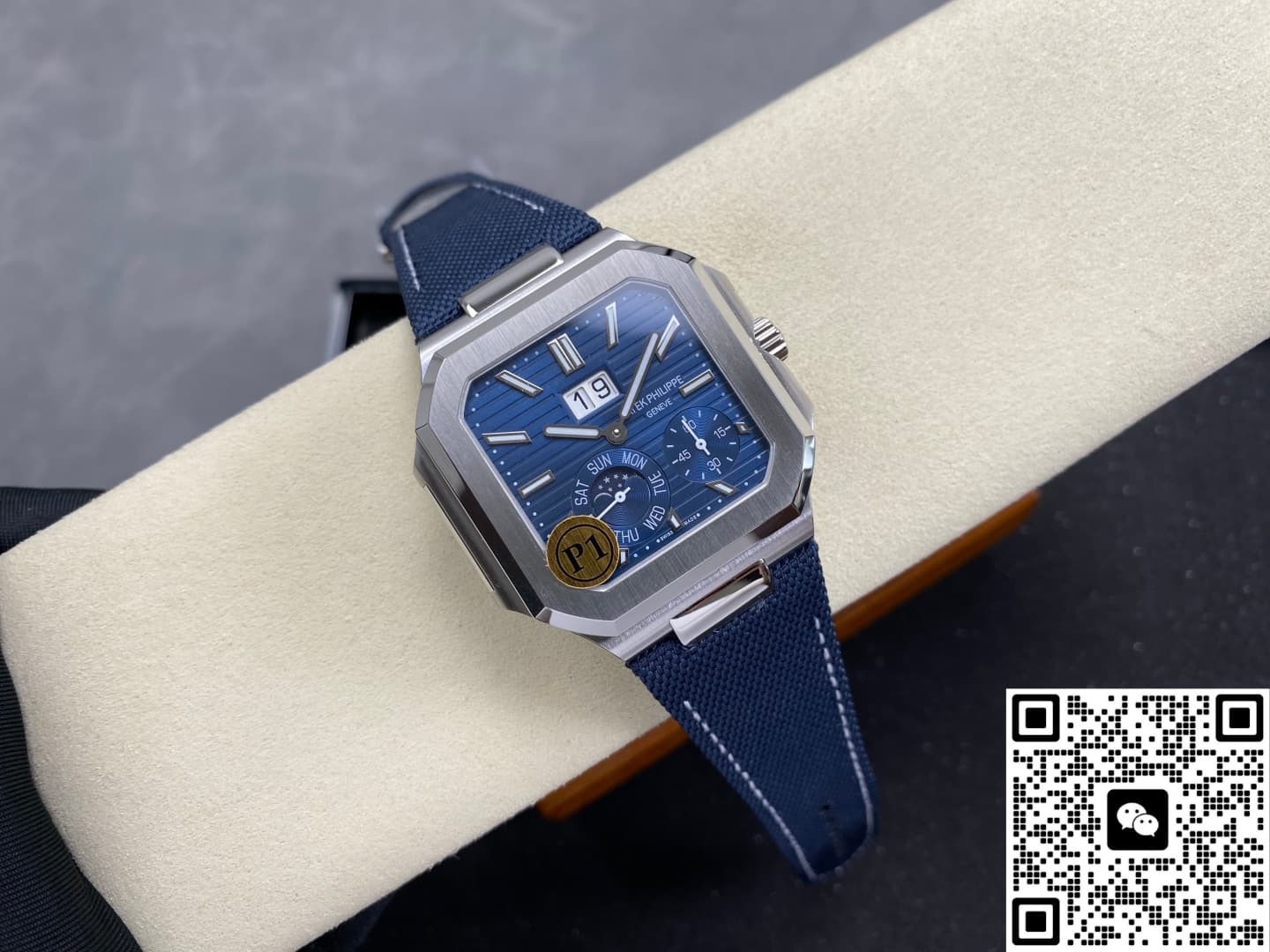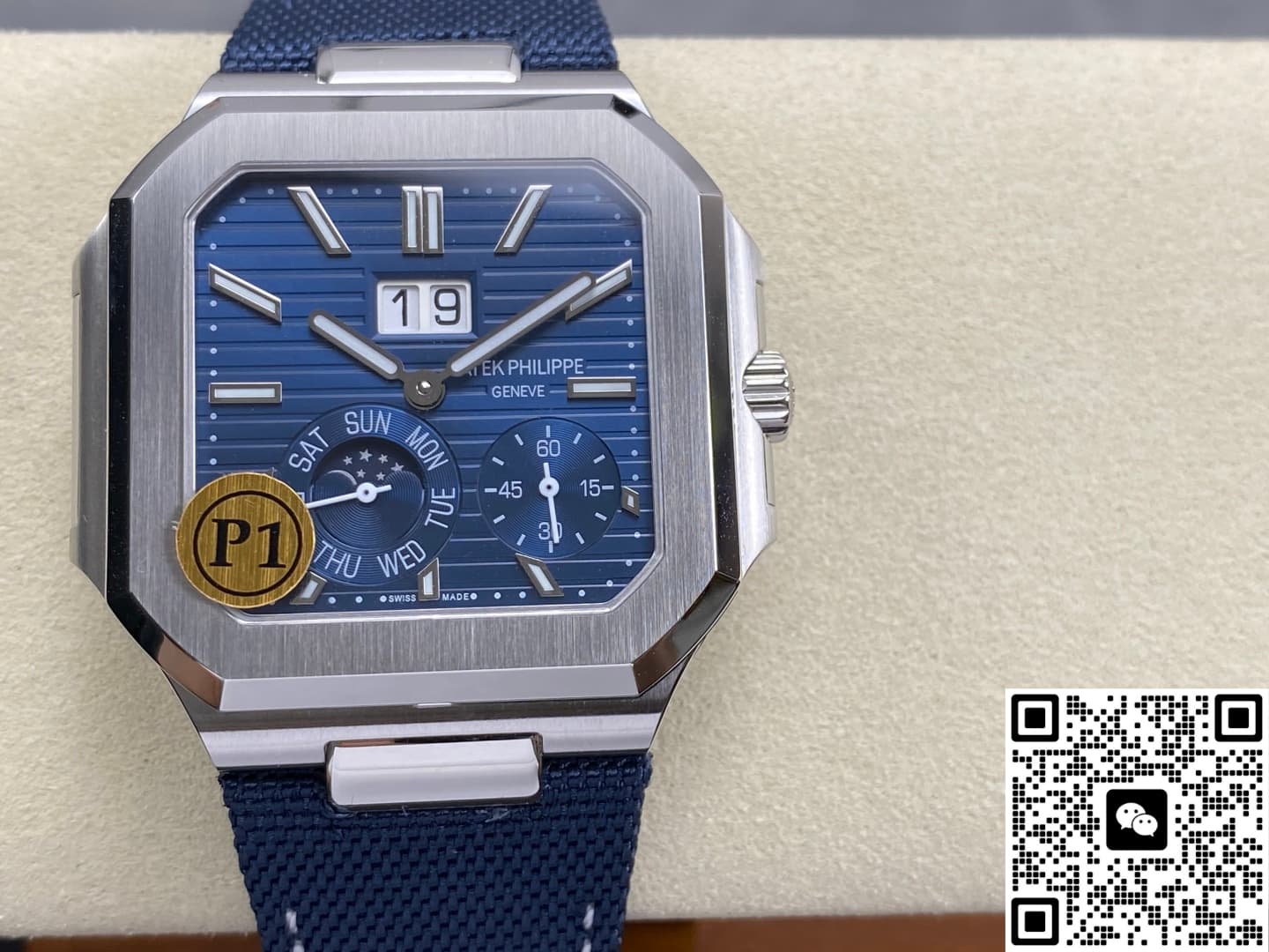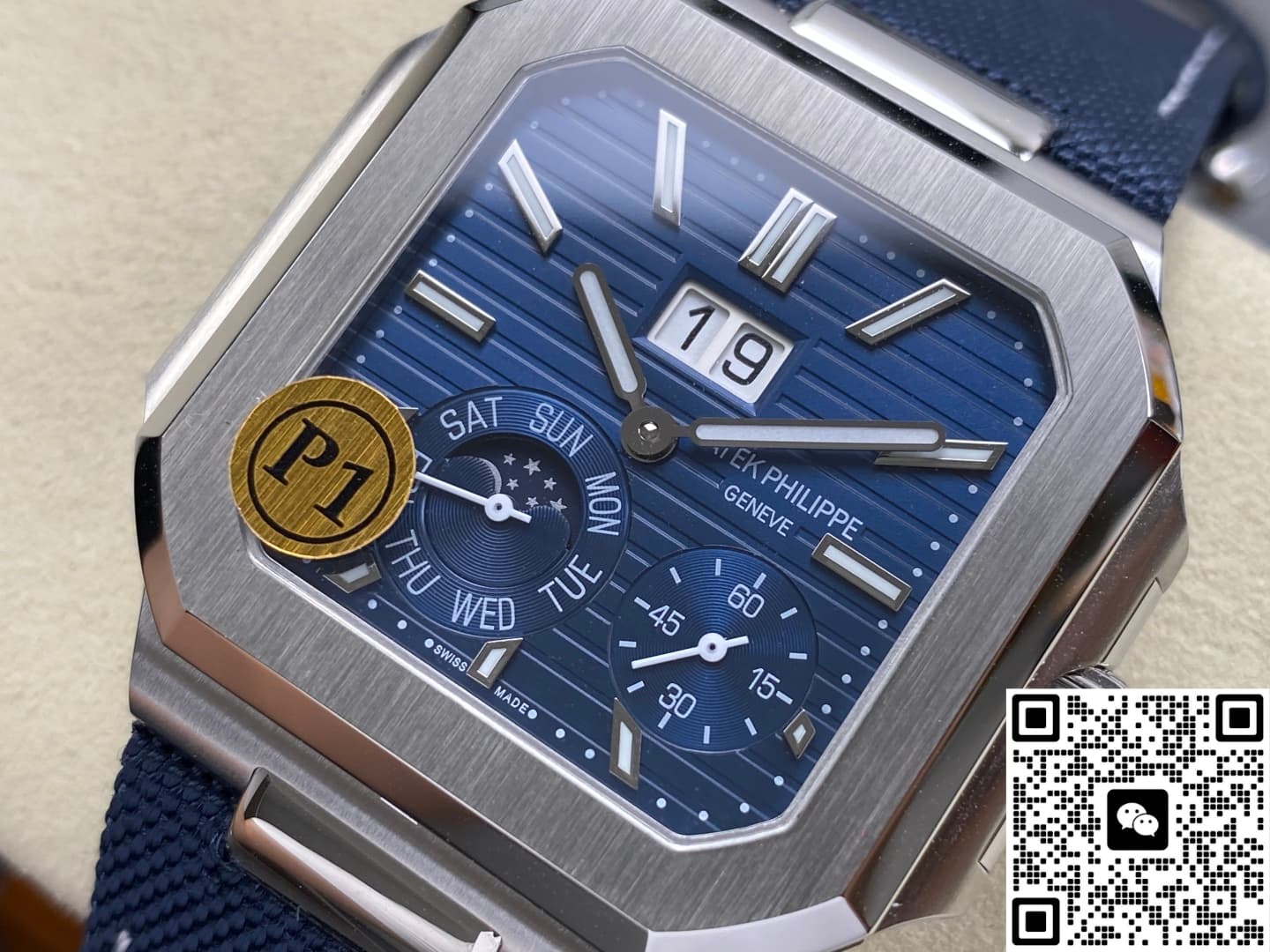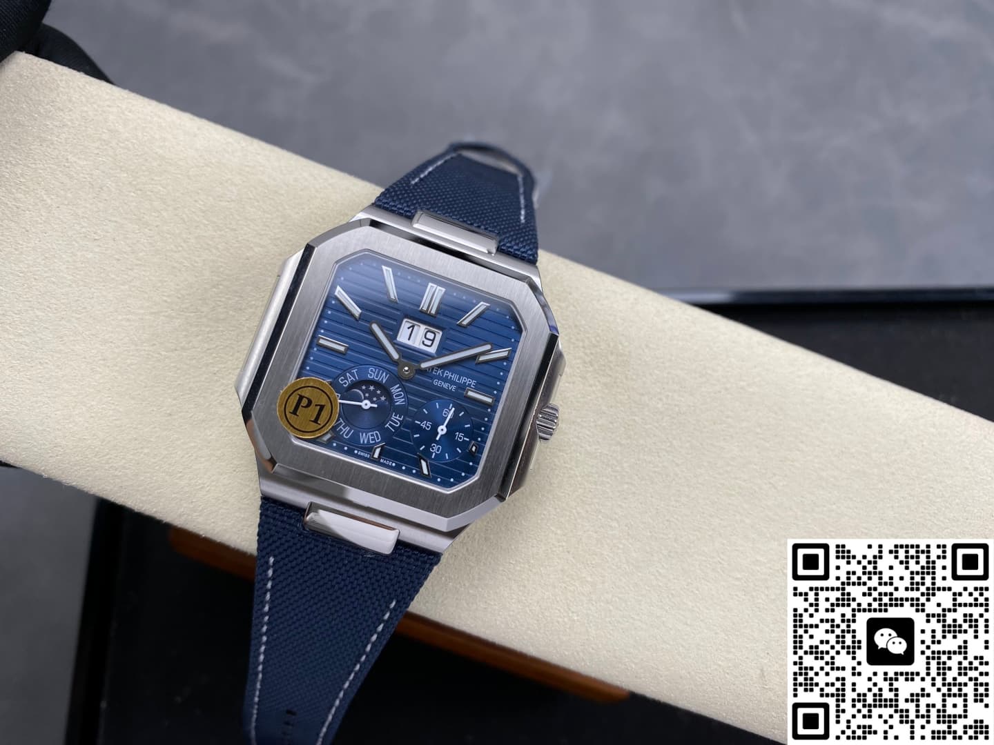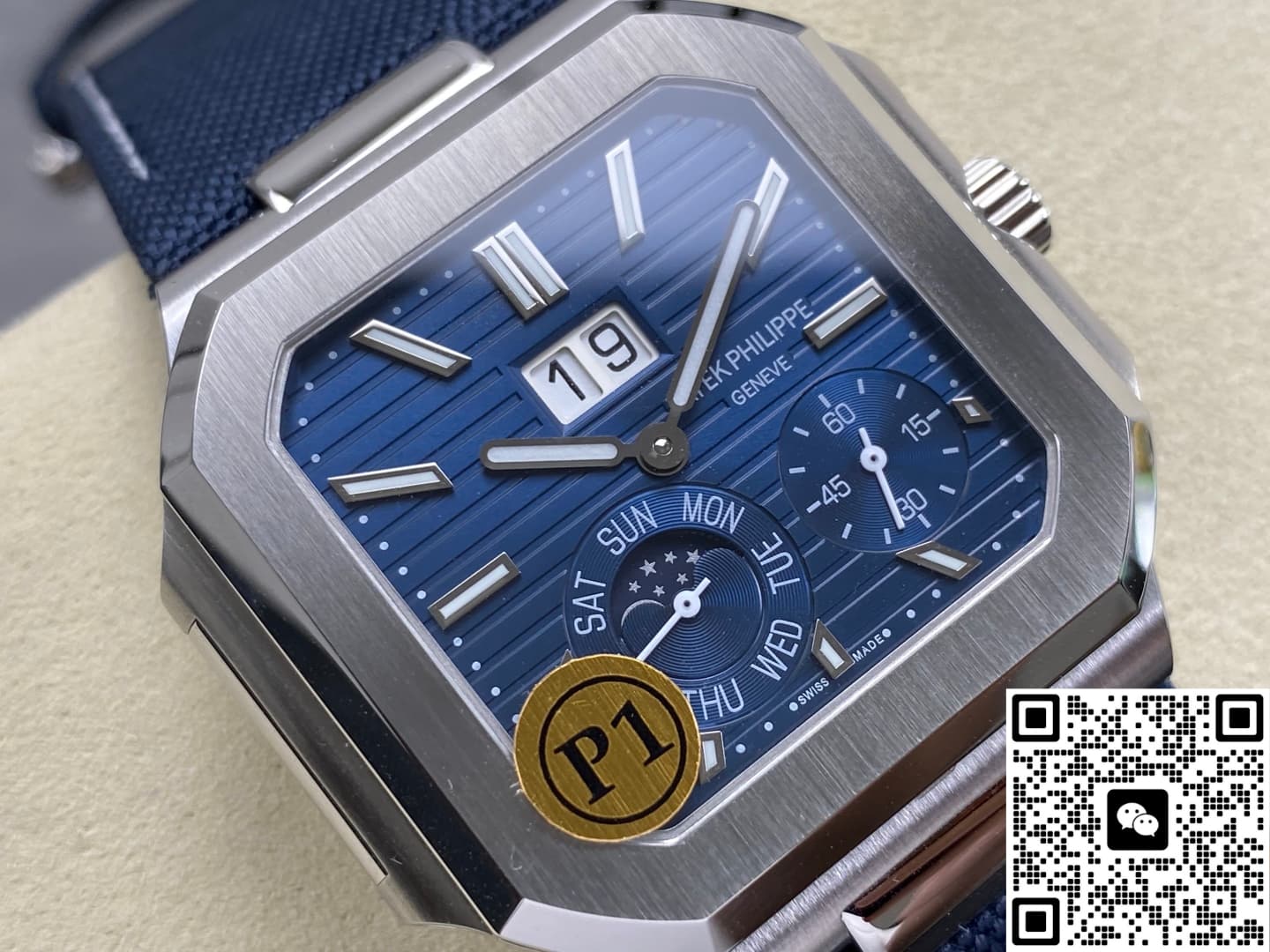 The replica watch of the Patek Philippe CUBITUS series 5822P-001 from P1 factory has an extremely high degree of authenticity. Different from the classic round wristwatches, this watch features a rounded corner and square-shaped case. This square design gives a sense of precision and uniqueness, and it is highly recognizable. Blue and silver are the main colors of the watch. These two combinations are also classic ones in wristwatches and are very eye-catching. P1 factory is a newly established factory specializing in Patek Philippe replicas in recent years. It focuses on 1:1 appearance restoration and has a good reputation in the watch ring field. So let’s take a look at how the craftsmanship of this Patek Philippe watch performs.