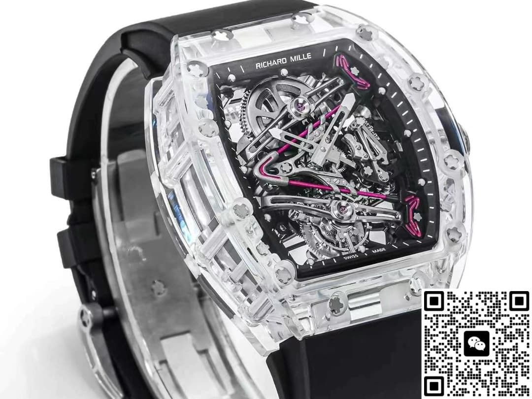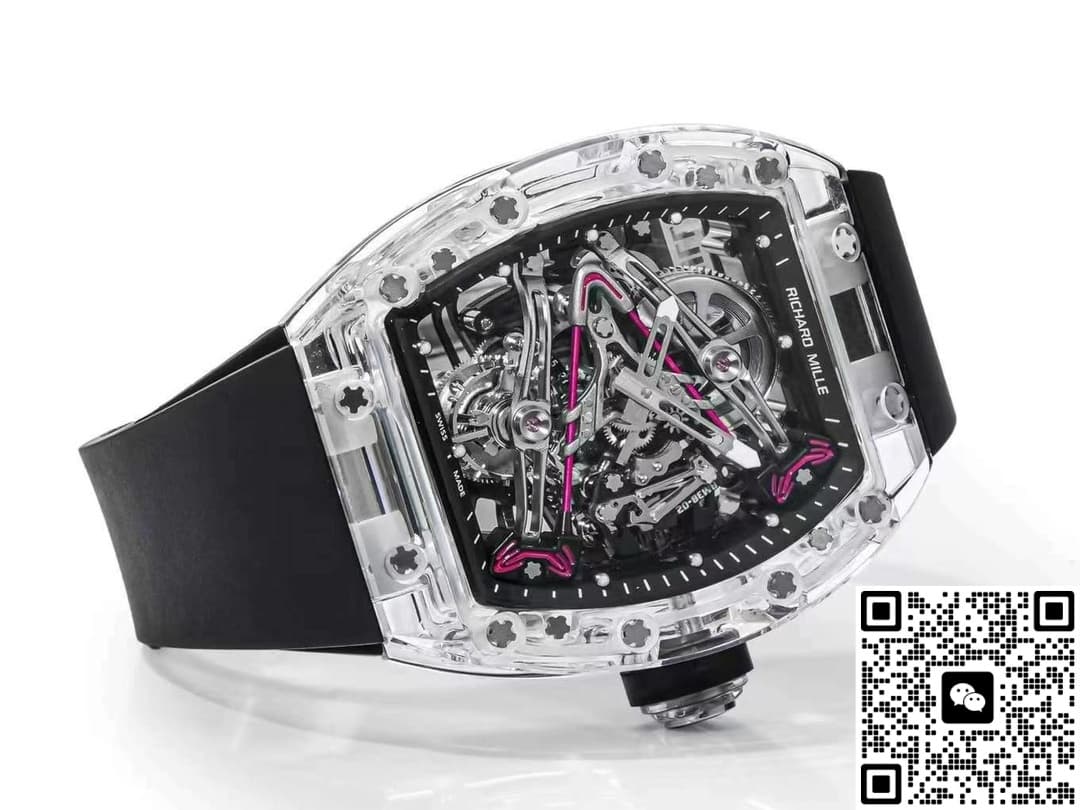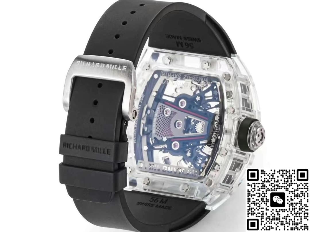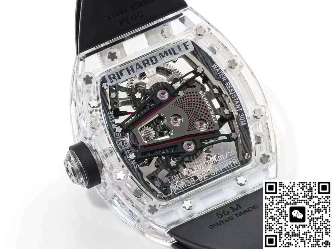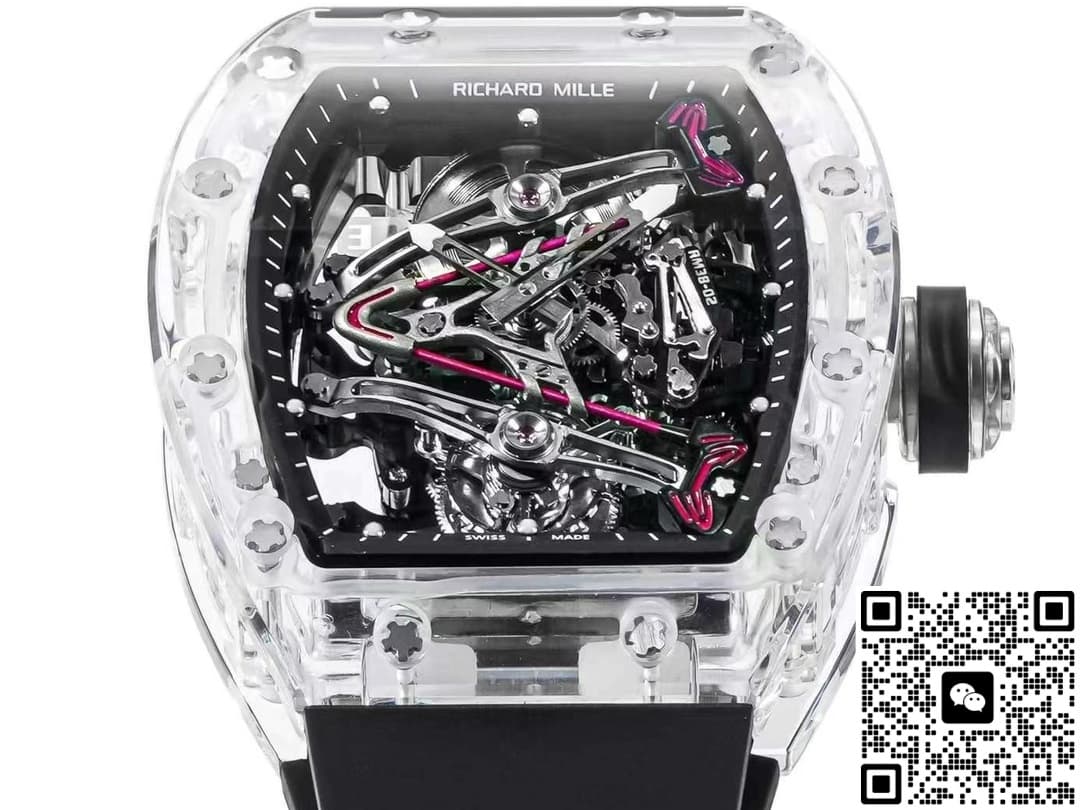Richard Mille is a well-known luxury watch brand from Switzerland. Its appearance often features a unique barrel-shaped design, which is highly recognizable. The style is bold, avant-garde, fashionable and futuristic. The Richard Mille RM38-02 replica watch has an extremely high degree of appearance fidelity. The original version immediately became the focus of the bezel upon its release. The combination of a white crystal case and a black strap has a unique aesthetic and is particularly distinctive. This watch not only has a high degree of appearance fidelity, but also offers a very good user experience. There are many similar versions on the market, but the quality varies greatly. Now let’s take a look at how this watch performs overall.
