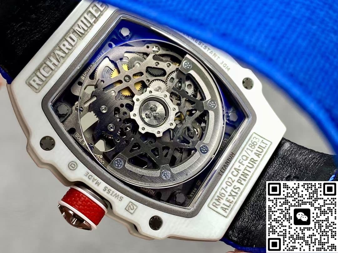This Richard Mille RM67-02 ALEXIS 1:1 Best Edition Replica Watch is very close to the original in terms of craftsmanship details and overall polishing. However, the low-quality versions differ greatly from the originals in many details. When purchasing, pay close attention to the polishing process of the case, the printing quality of the dial, the hands and other details. This is the most direct way to identify quality. As the saying goes, it is in the details that the true quality is seen. Details often reflect the overall quality of a product. Although the price of replica is relatively affordable, one should not only focus on the price but also pay more attention to the quality and performance of the product. When purchasing, please choose a reliable Chinese replica watch website. This will not only guarantee product quality, but also provide after-sales service to enhance your shopping experience.