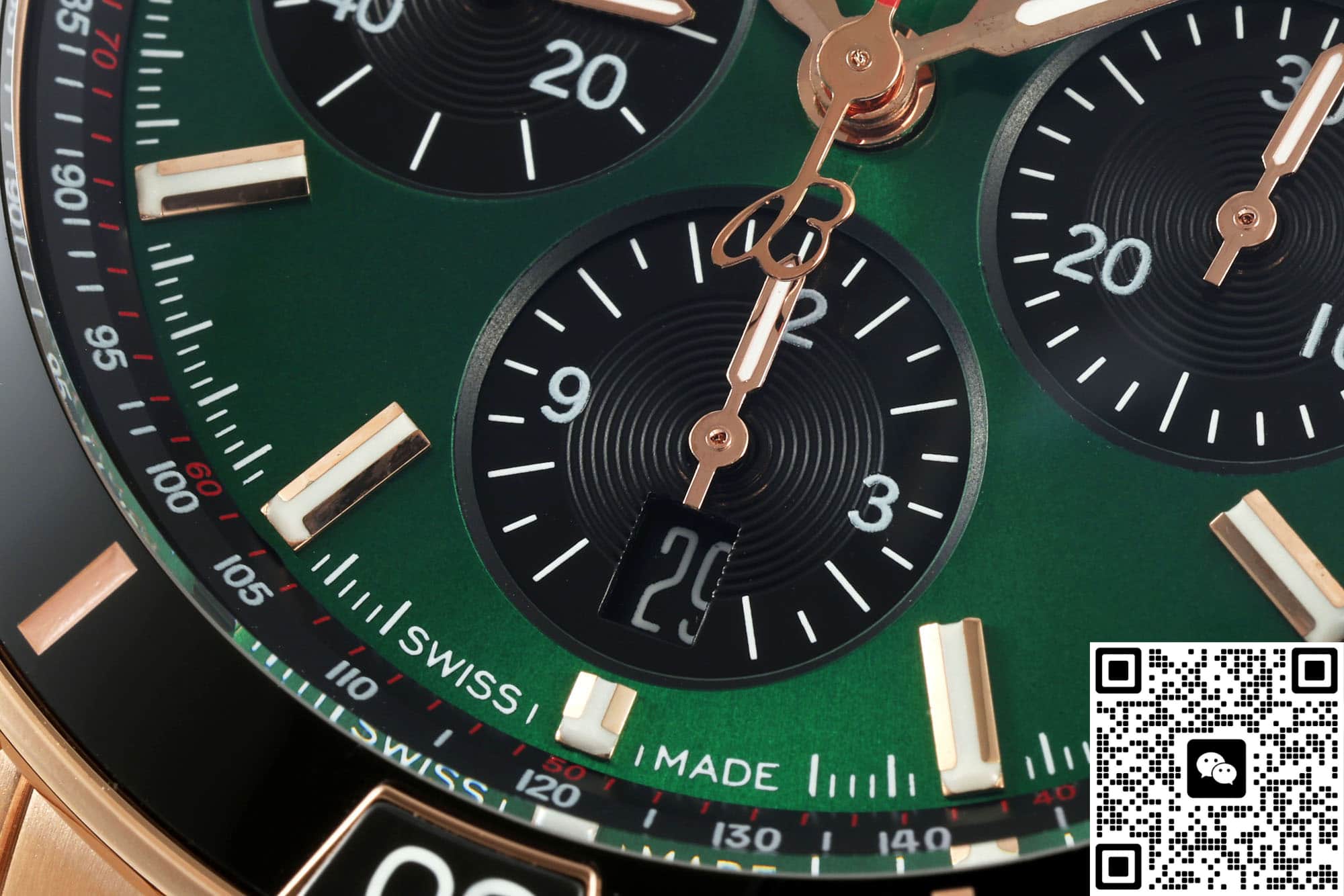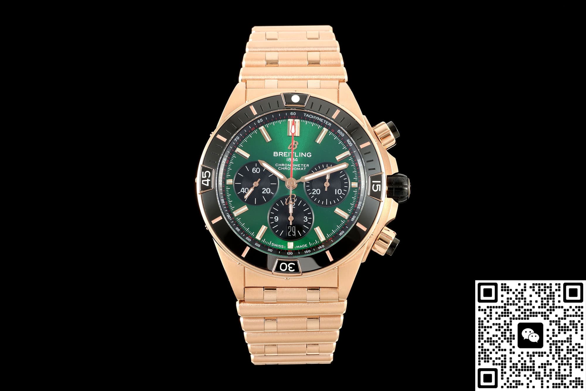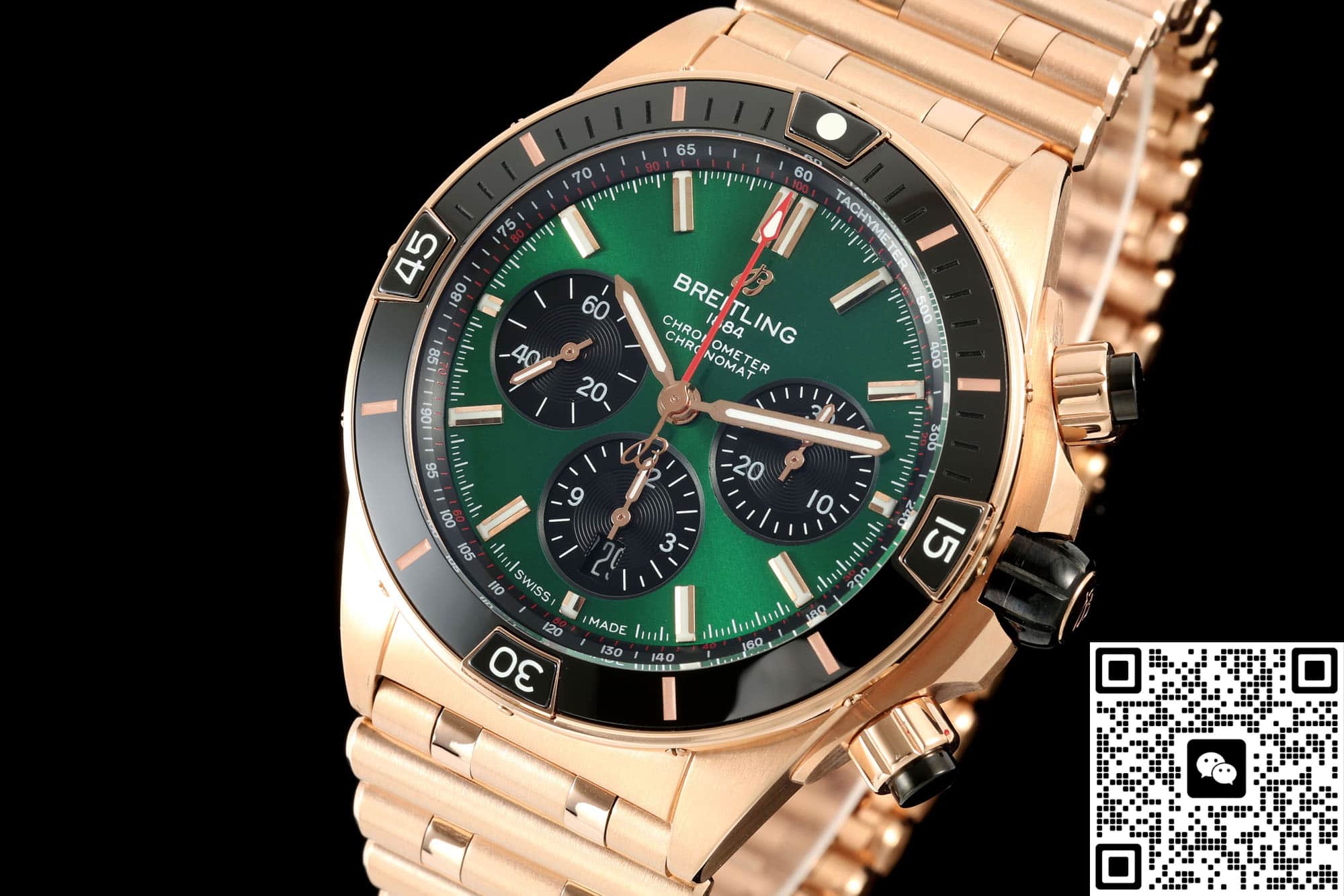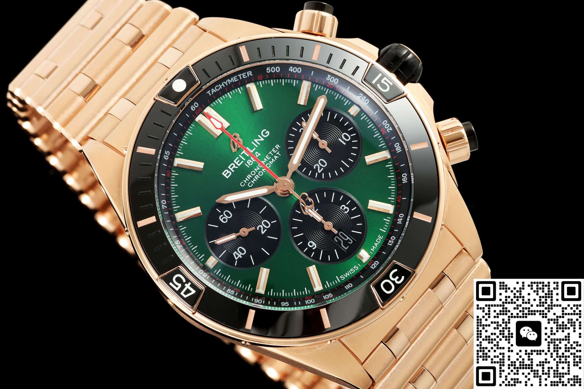From GF Factory to BLS Factory, and then to TF Factory which focuses on the Breitling series, all have been replicating Breitling. Because Breitling mechanical chronographs combine the practical tools of professional chronographs with a fashionable and casual style, they are also the favorites of most watch enthusiasts. TF Factory can meet the pursuit of all-purpose sports watches by watch enthusiasts. This time, let’s take a look at the latest Breitling Chronomat RB01361A1L1S1 replica watch launched by TF Factory, and see how the gold and green color scheme and craftsmanship of the watch, as well as the performance of the movement, are.