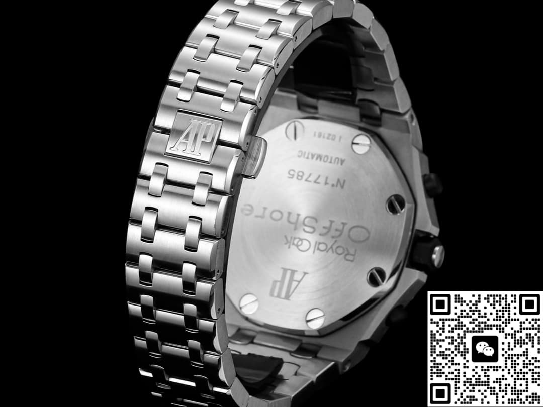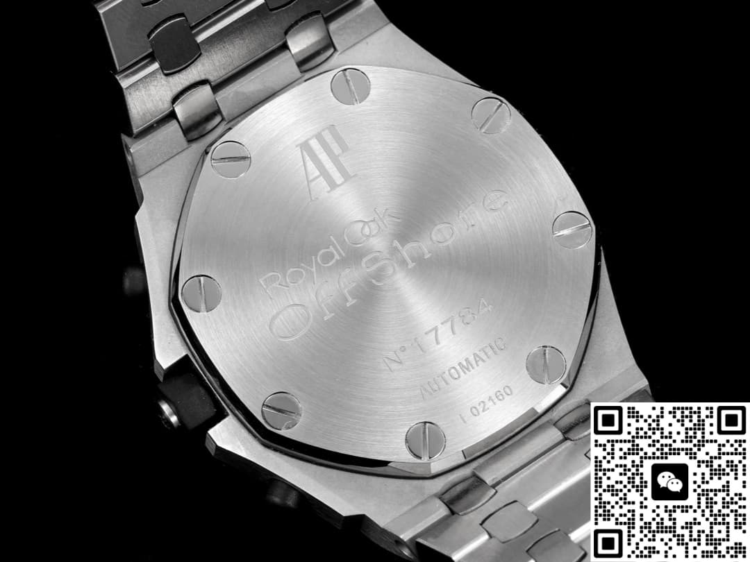 This wristwatch is equipped with the Super Clone CALIBRE 4404 movement, with a base frequency of 28,800 vibrations per hour. It keeps very accurate time and has a power reserve that is suitable for daily wear. The experience in terms of functionality is quite good. The feel of the timing button has been significantly improved compared to the traditional CAM structure. The starting resistance is approximately 0.8N, the stop resistance is about 1.2N, and the reset resistance is about 1.5N. The operation feedback is clear. This point deserves a thumbs-up for TK Factory. The flyback retrograde is a highlight of this watch, but the retrograde accuracy still has a deviation of 0.05 seconds. Long-term use will cause fatigue of the spring plates, so it is not recommended to use it frequently. The date jumps on time. The back cover is a tight case back, which not only protects the movement but also prevents it from being seen through, adding a sense of simulation to this Audemars Piguet model.