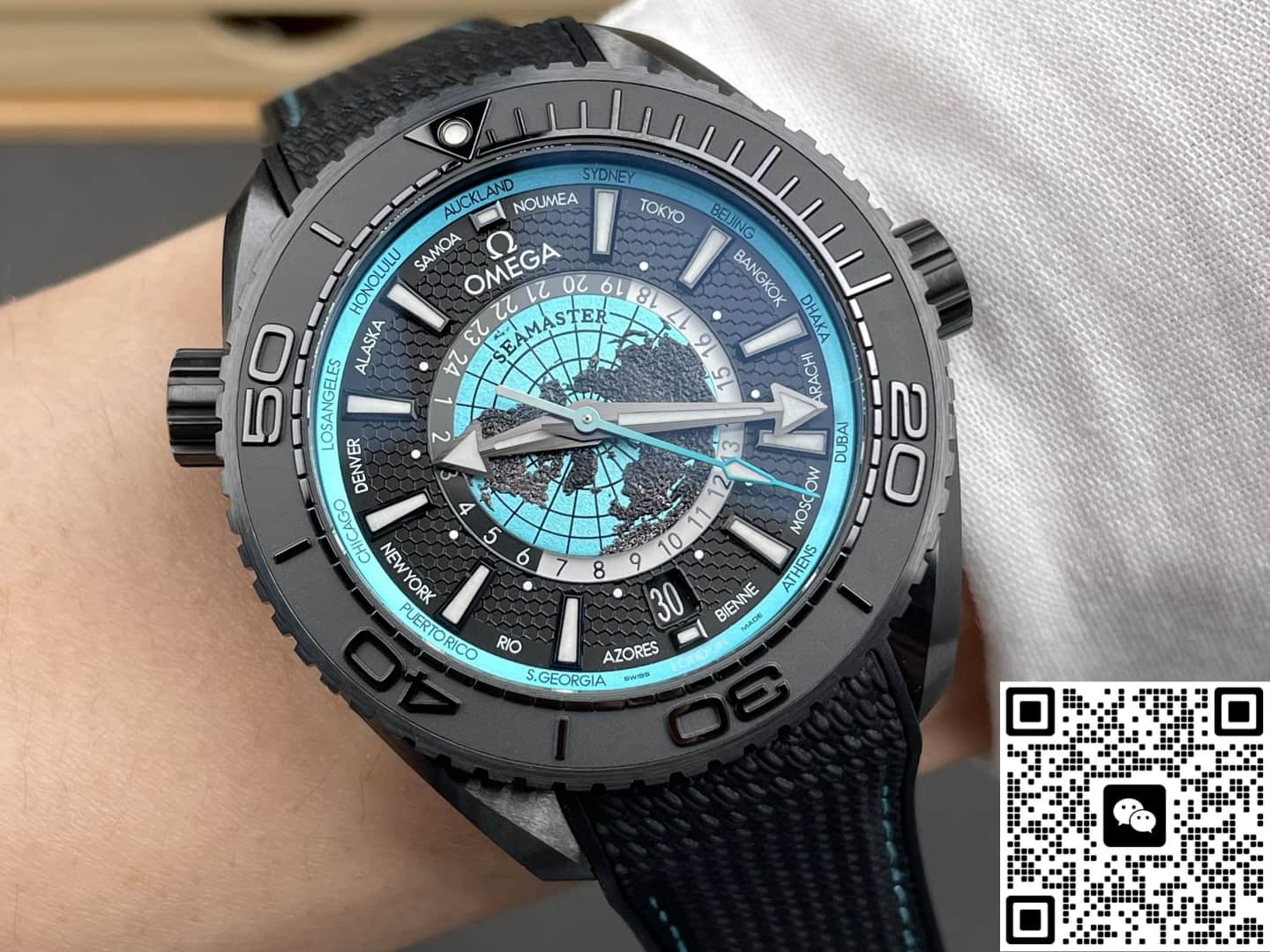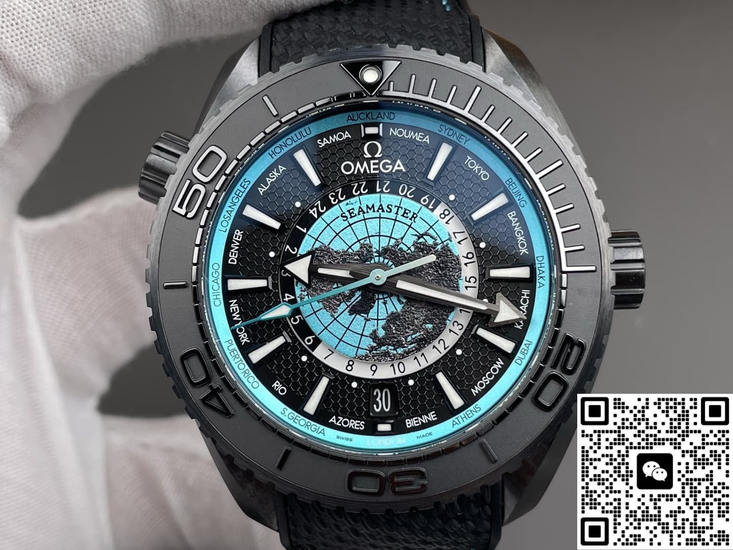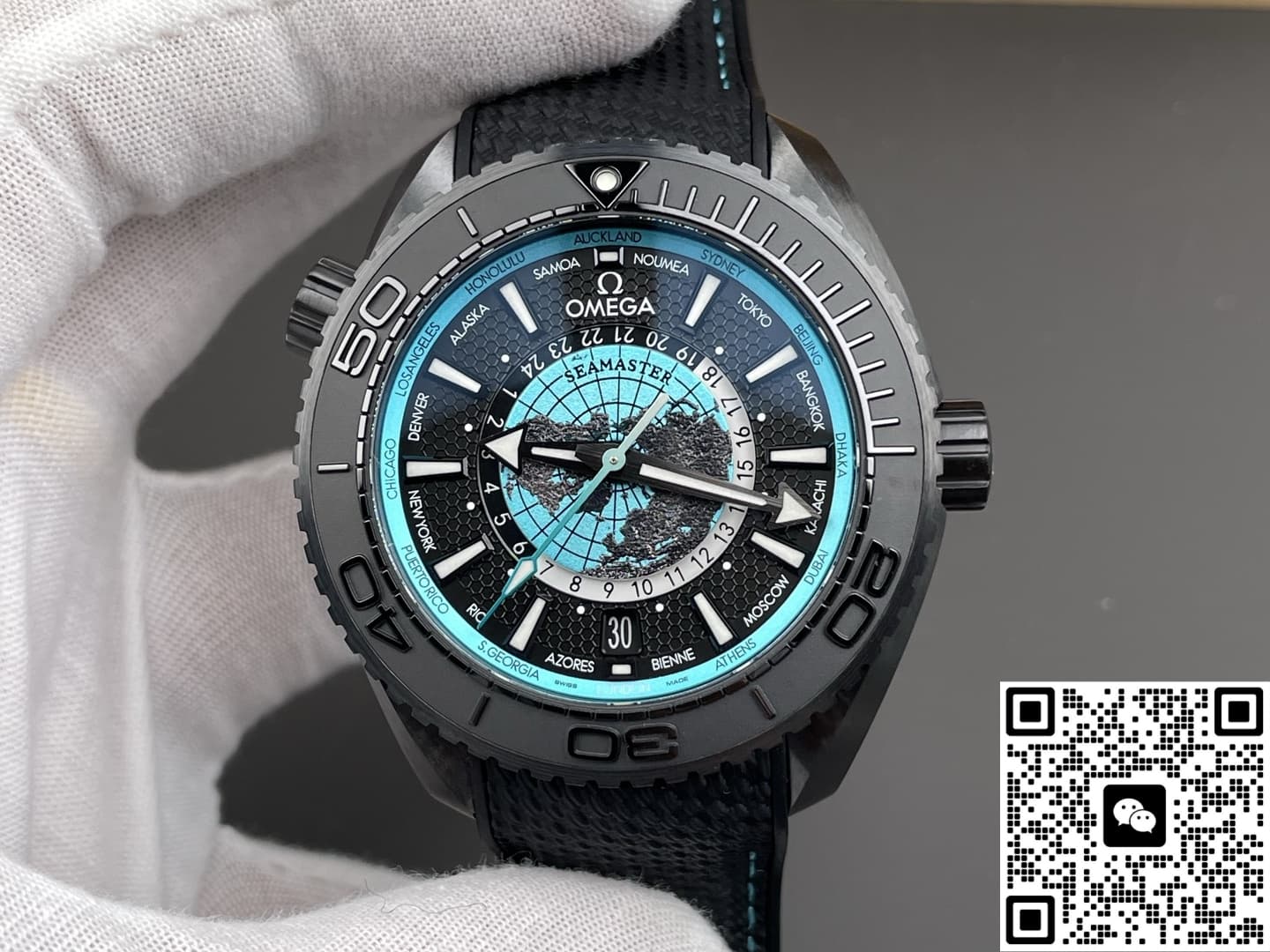 After years of accumulation, replica watches are no longer simple imitations but works of art with advanced technology and exquisite craftsmanship. The demand for high-quality wristwatches is also constantly increasing. As a major manufacturer, VS Factory has played a leading role. The VS Factory Omega Seamaster 215.92.46.22.01.006 replica watch, with its high degree of restoration, has become the target pursued by countless watch enthusiasts and is also a benchmark in the industry. Let’s take a look together and see if it’s restored like this! First, let’s look at the appearance and details. The watch has a large diameter of 45.5MM, which is quite suitable for men with larger wrists to wear. It looks very elegant when worn and fully showcases masculinity. The case is a black ceramic one, treated with a brushed finish, and paired with embossed diving hour markers presented by laser ablation technology, giving it an excellent texture. There is a laser-engraved image of the Earth on the dial, which is a pattern of the Earth viewed from an Arctic perspective. The craftsmanship of VS factory is relatively exquisite, and the outline of the continents is clearly distinguishable. Paired with the eye-catching Tiffany blue, it enhances the aesthetic appeal from the perspective and makes this large diameter even more striking. Let’s take a look at the performance of VS Factory in terms of materials and craftsmanship. As the “future material” in the watchmaking industry, the black ceramic case requires multiple complex processes in its production, including high-pressure pressing of specially made ceramic powder, sintering in a 1400℃ high-temperature furnace, precise processing with diamond tools, and surface treatment with a brushing process. This material is six times harder than stainless steel, featuring extremely strong scratch and wear resistance. It can also completely resist corrosion from sweat, seawater, etc. Its weight is approximately 30% lighter than that of stainless steel, and its color remains permanently stable without fading. The weight of the grade 5 titanium dial is only 60% of that of stainless steel, and it is completely anti-allergic, suitable for long-term wear. The unique grey matte luster also adds a high-end texture to the watch. VS Factory is very particular about materials and materials used. It can be said that this is a wristwatch with an extremely high cost performance.