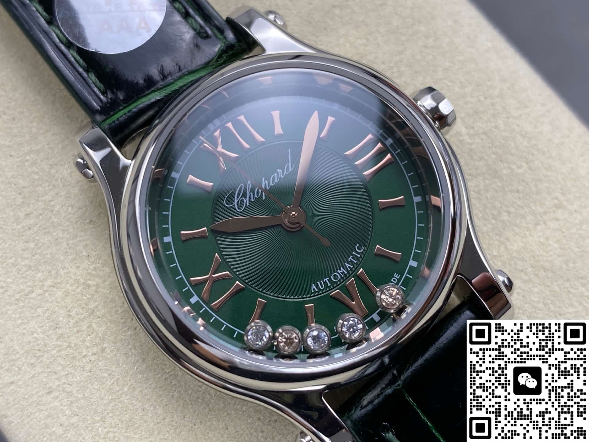 The appearance design of the Chopard HAPPY SPORT series 278573-3029 watch is classic and attractive, with bright green color. The unique color scheme brings a different charm to the watch. Whether you wear it in daily life or in business situations, you can’t go wrong. If you like it, this high-quality replica watch is a good choice.
