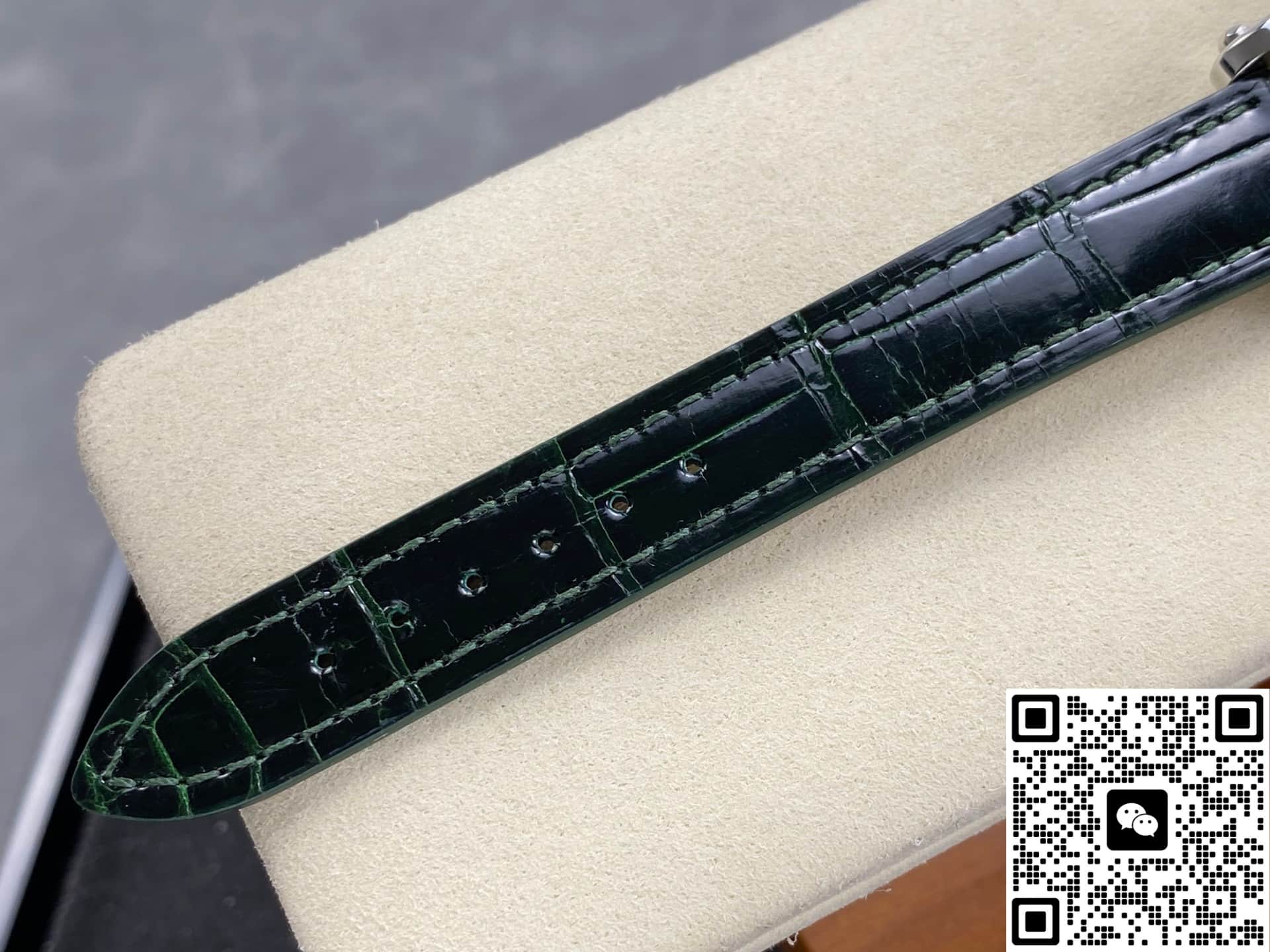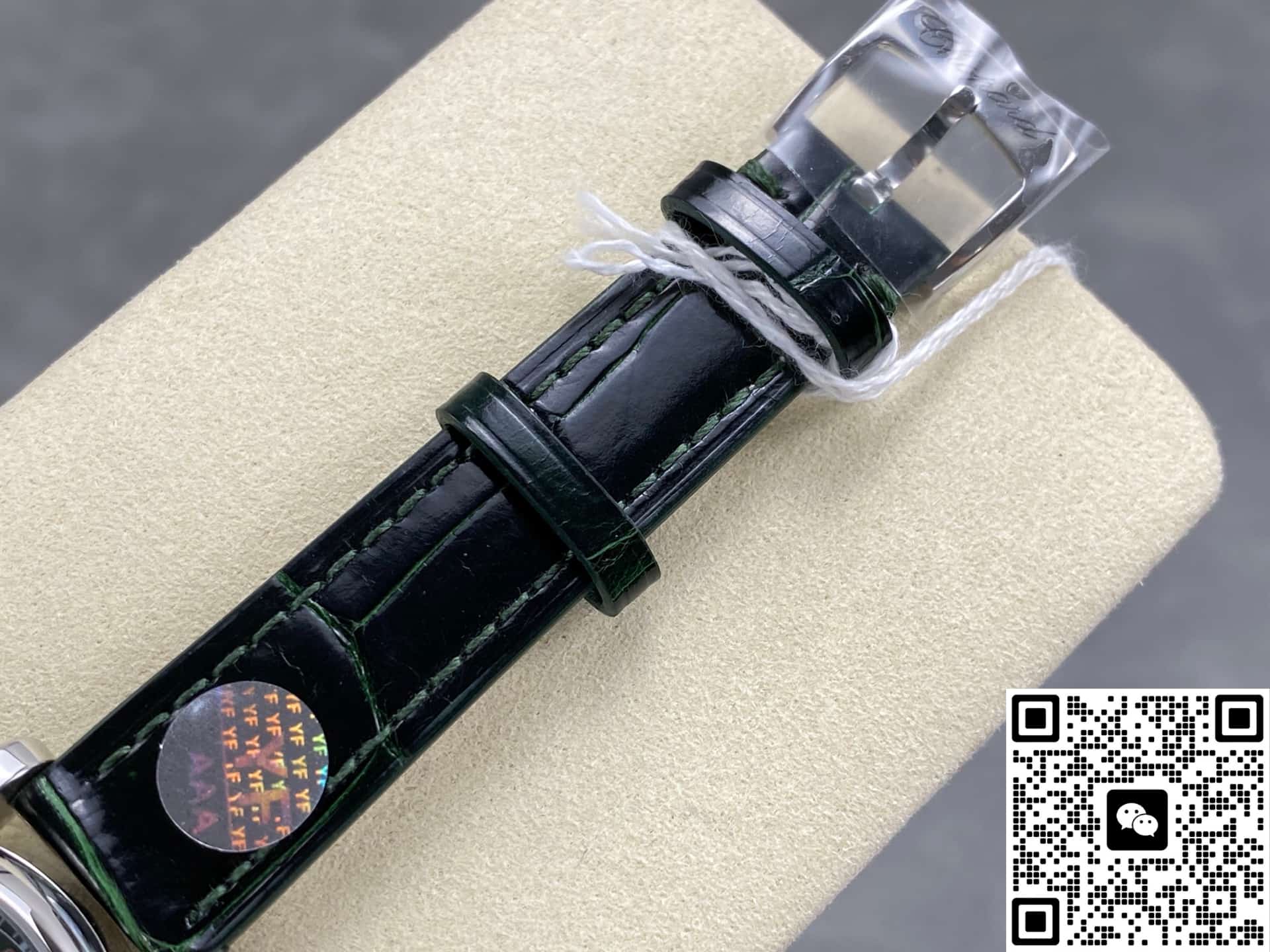 The diameter of the watch is 30 mm, which is exactly the same as the original version. A watch of this size is small and exquisite, very suitable for girls to wear. The stainless steel case and bezel are polished by the YF factory. The case is round and full, with polygonal facets on the sides, which looks very textured. A green gemstone is set on the top of the crown. The gemstone is crystal clear and has no impurities. It echoes the main color of the watch. It is a very clever design. The original strap is made of green crocodile leather, while the YF factory uses stainless steel straps. Personally, I think each has its own advantages. The strap is brushed and polished and has a good texture. The back of the watch adopts a see-through design, the fish-lin pattern on the plywood is exquisitely polished, the engraving on the automatic rotor is clear and profound, and the details are well done. The appearance of this replica watch is very restored, and the workmanship is solid and delicate. It is worth considering.