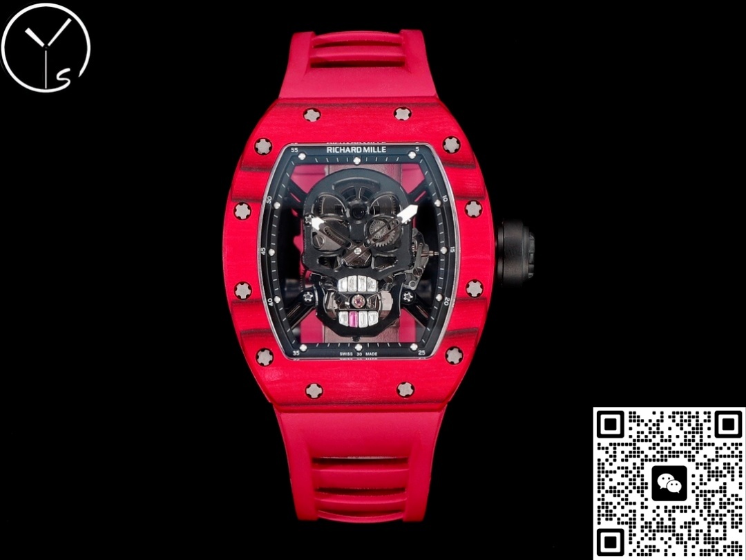 Today, let’s talk about a Richard Mille replica watch. This Richard Mille RM52-01 is the latest release from the YS factory and is considered the top version in the market, positioned as a top luxury wristwatch. The overall color of the watch is a bright red, with a unique pattern on the carbon fiber case. The black skull pattern in the center of the dial takes up most of the space. The appearance of this watch has a strong visual impact and a futuristic feel, making it very popular among watch enthusiasts who pursue individuality and fashion. Wearing it out will definitely turn heads. In this article, I will evaluate and analyze it from multiple aspects to help you understand it better.