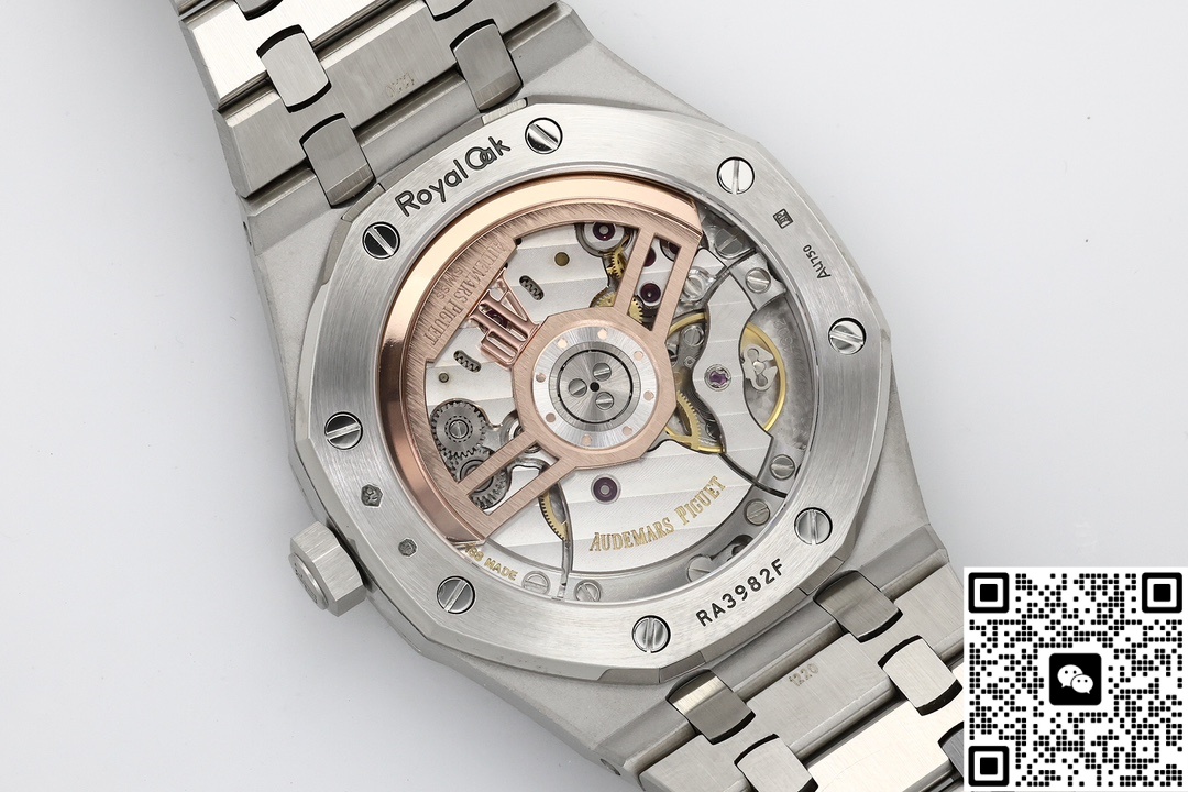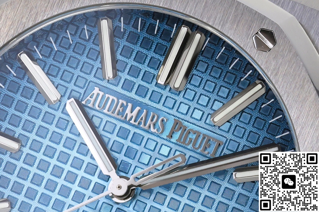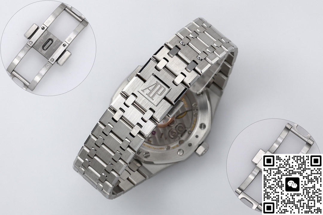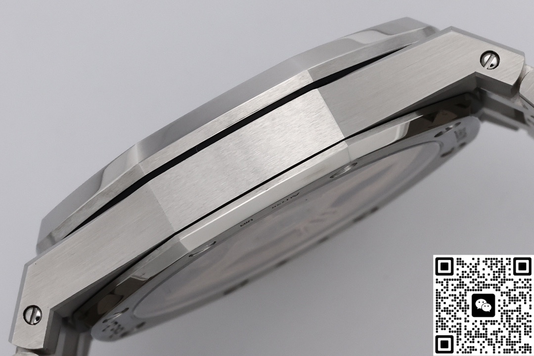 Let’s take a look at the material aspect together. ZF Factory is also very meticulous in terms of materials. The ZF factory Audemars Piguet Royal Oak 15510BC.OO.1320BC.02 replica watch features a classic sapphire crystal crystal that is very transparent. The case material is 316 stainless steel. So, what makes it superior to other steels? The steel of this watch has a carbon content of ≤0.045%, a nickel content of ≥10%, and a corrosion resistance index PREN of ≥26, reaching medical grade. The anti-corrosion performance has been significantly enhanced, making it particularly suitable for corrosive environments such as contact with seawater and sweat. Even after long-term wearing, it will not show signs of rust or discoloration. This material also has good ductility and toughness, which is convenient for processing complex shapes. The luster presented after grinding and brushing is very textured. Other factories do not use as much material and cannot produce such a texture. ZF factory gives you a different experience. The secret to making the smoky blue dial lies in the advanced physical vapor deposition (PVD) technology. First, the base of the dial is polished to ensure a smooth surface. Then, in a high vacuum environment, the metal target material is evaporated and deposited onto the surface of the dial. By precisely controlling the coating time and temperature, the desired blue tone is achieved. Subsequently, multi-layer coating technology is applied. Finally, the desired gradient smoke effect is obtained. Then, it is baked at high temperature to make the color last longer and not change color easily.