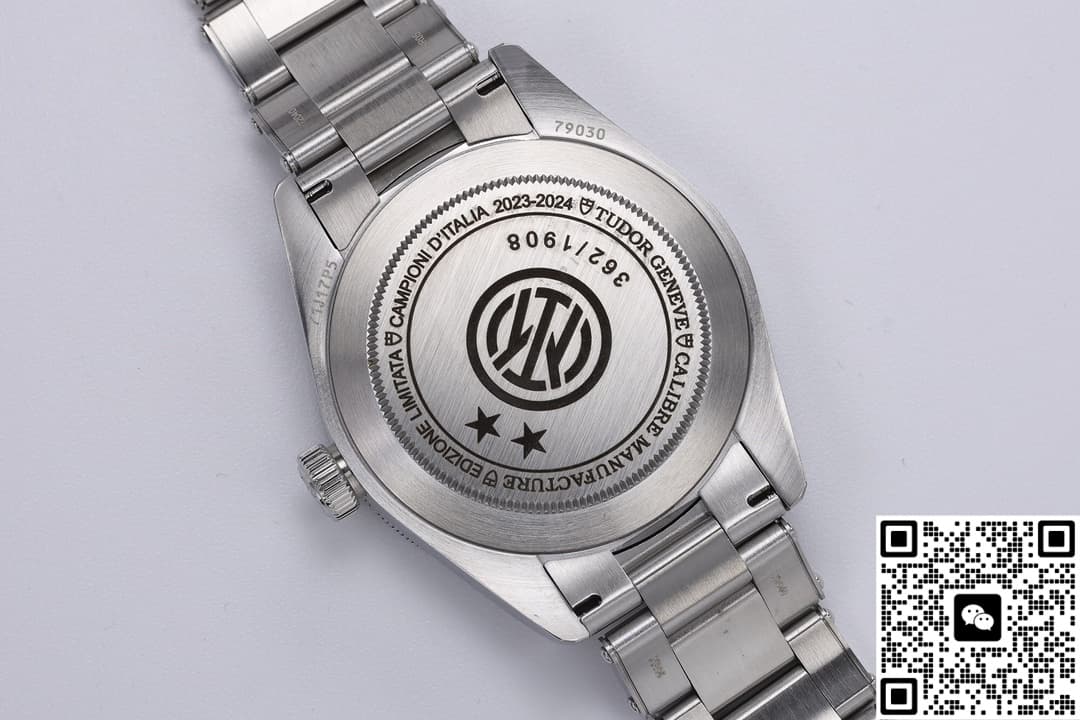 The gradient blue dial is the biggest selling point of this wristwatch. The “Blu Inter” smoked gradient process of ZF factory gradually transitions from the center to the edge naturally into a deep blue. This asymmetric gradient technology has relatively high requirements for spraying. The uniformity performance during the transition reaches 90%. When rotating the dial under the light, distinct layers of light and shadow changes can be seen. There is a sense of deja vu from day to night. The emblem of Inter Milan is engraved at the six o ‘clock position on the dial, using laser engraving technology. The edges are clear and there is no roughness. The two gilded double stars on it symbolize the 20th league championship. The hour markers and snowflake hands are all outlined with gold, which does not look monotonous and adds a touch of fun and luxury. The black aluminum bezel is also one of the features. Different from the ceramic material, this ZF factory Tudor Black Bay 58 INTER limited edition replica watch continues to use Tudor’s classic anodized aluminum bezel, which is not as hard as ceramic and requires careful care. However, the aluminum bezel is lighter in weight, has a more mellow touch, and features a unique matte finish. This is precisely the “vintage feel “that vintage diving watch enthusiasts are fond of. Actual measurement reveals that the aluminum bezel scale of ZF is filled with white baking varnish, which forms a sharp contrast with the blue and black dial. The position of the night pearl is slightly yellowish (compared to the pure white of the genuine product), which is a common color difference problem in current replicas. The damping sensation of unidirectional rotation is moderate, and the feeling of each compartment is very clear and distinct, meeting the safety standards of diving watches. It should be objectively pointed out that the scratch resistance of aluminum rings is indeed weaker than that of ceramics. In daily use, avoid bumps and knocks, otherwise fine scratches are likely to occur. This is due to the material’s characteristics.