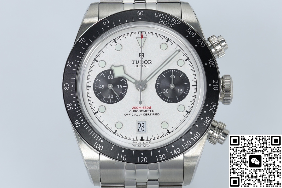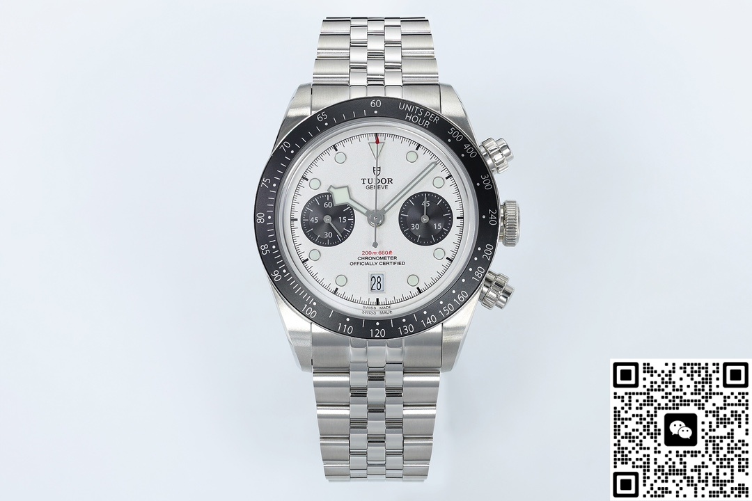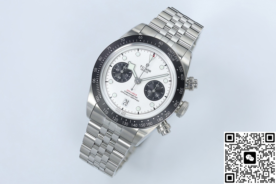 Today, we are reviewing the ZF factory Tudor Black Bay M79360N-0014 replica watch. Let’s first take a look at the appearance. The size is the same as the genuine one, the classic 41MM size, which is just right. It not only ensures comfort when worn but also retains a sense of presence. The case thickness is controlled at 14.4 millimeters, the same as the original version. This thickness is also a normal thickness for chronograph watches, and the overall proportion is more harmonious. The dial features a classic panda dial color scheme, with a white dial paired with two black chronograph sub-dials. This dual-eye chronograph layout is symmetrically distributed on both sides, creating a more balanced and harmonious visual effect. The color contrast is striking, making it look better in photos. More importantly, it has enhanced the functionality of the wristwatch, with a reasonable layout and more convenient operation. ZF Factory is also meticulous in its craftsmanship, adopting multi-layer printing technology. The Pointers and scales have a strong three-dimensional effect and clear edges. The bezel of this wristwatch is a classic aluminum oxide bezel. The wear resistance and corrosion resistance of the bezel have been enhanced through anodized aluminum process. It has a black matte ceramic texture but is 40% lighter than ceramic and is less likely to crack upon impact. ZF Factory also pays tribute to the original version in terms of materials, using high-quality 316L stainless steel. Although it is not as good as 904L stainless steel, its corrosion resistance and oxidation resistance are also very excellent, and it is more scratch-resistant than ordinary stainless steel. The surface of the case is treated with a combination of polishing and frosted processes, which visually enhances the sense of layering and also improves the texture and touch of the watch. It demonstrates the quality that a high-end replica watch should have.In a horizontal comparison, what are the differences between the APS factory and the clean factory? The color difference ΔE of the APS disc surface is approximately 2.3, while that of the ZF is controlled at ΔE<1.5. The Clean aluminum ring scale is prone to paint peeling. ZF uses anodizing + sealing, and the 100-grid test is 0 grade.