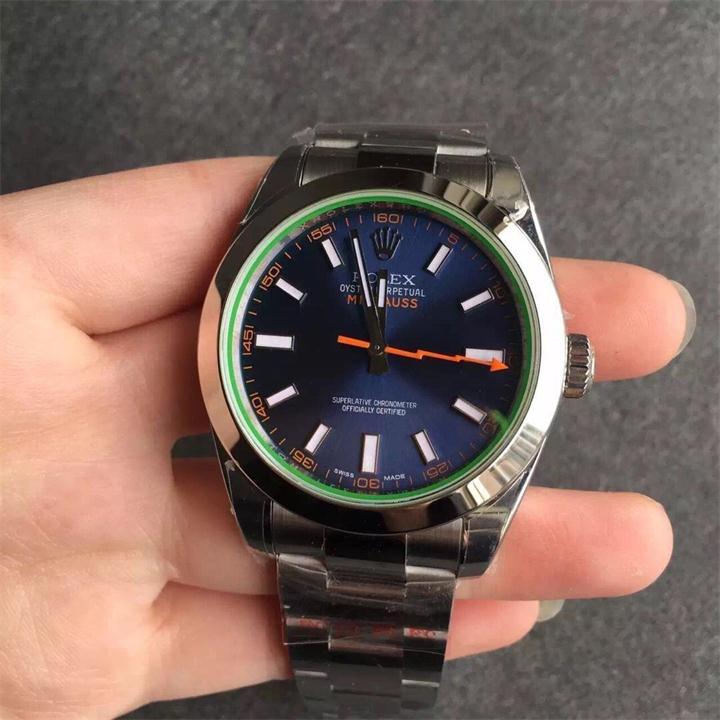 - The top replica Rolex Milgauss 116400-GV-72400 blue dial and automatic mechanical watch. The workmanship is superior, the waterproof properties is not good, and the noctilucent is beautiful too. It is absolutely N factory production, and it is a better version than BP factory version. The specific parameters are as follows: