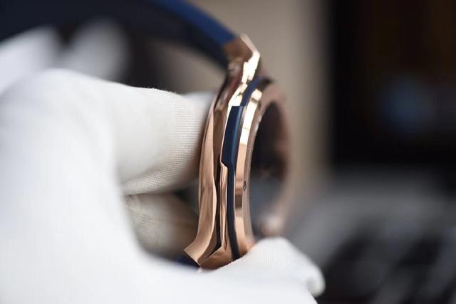 Let’s see the size and thickness of this replica watch. The case type of this replica Hublot watches is relatively special, the measurement contains handlebars( the widest part of the whole) and the watch diameter is 45mm, thickness is 9.85mm. Rose gold watch case and blue dial matched very specially, and it is add a fashion sense in luxury.